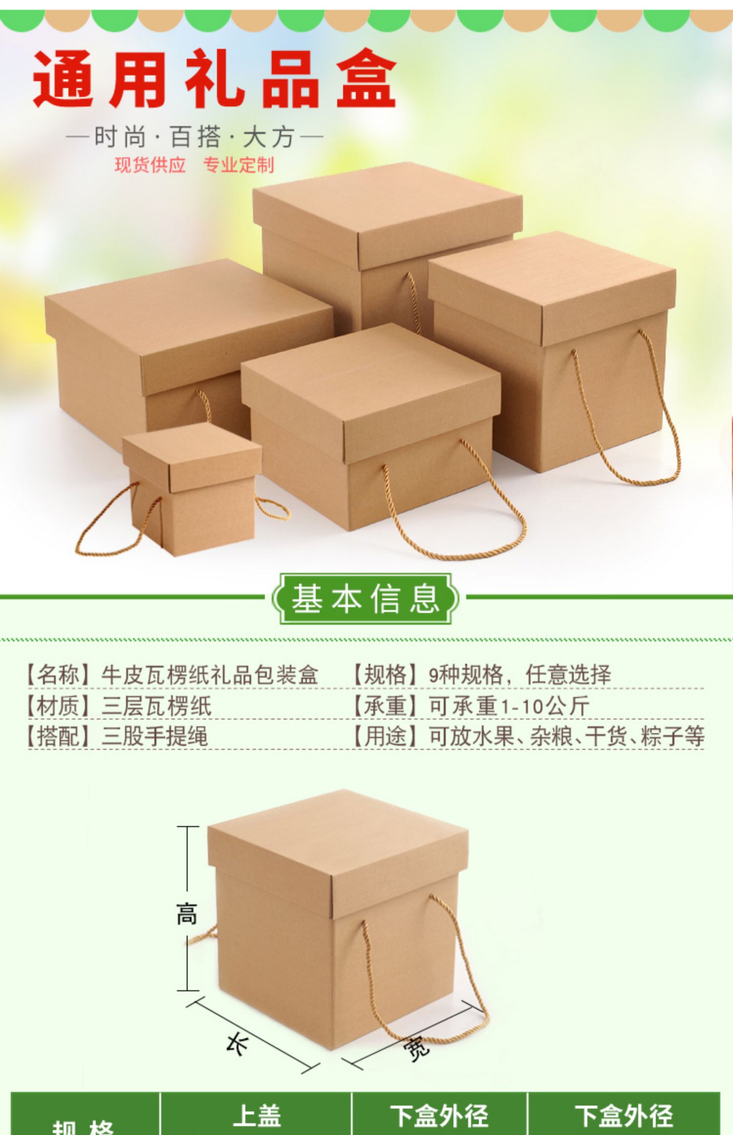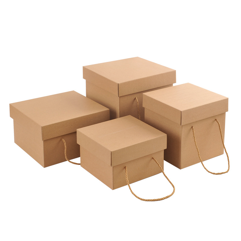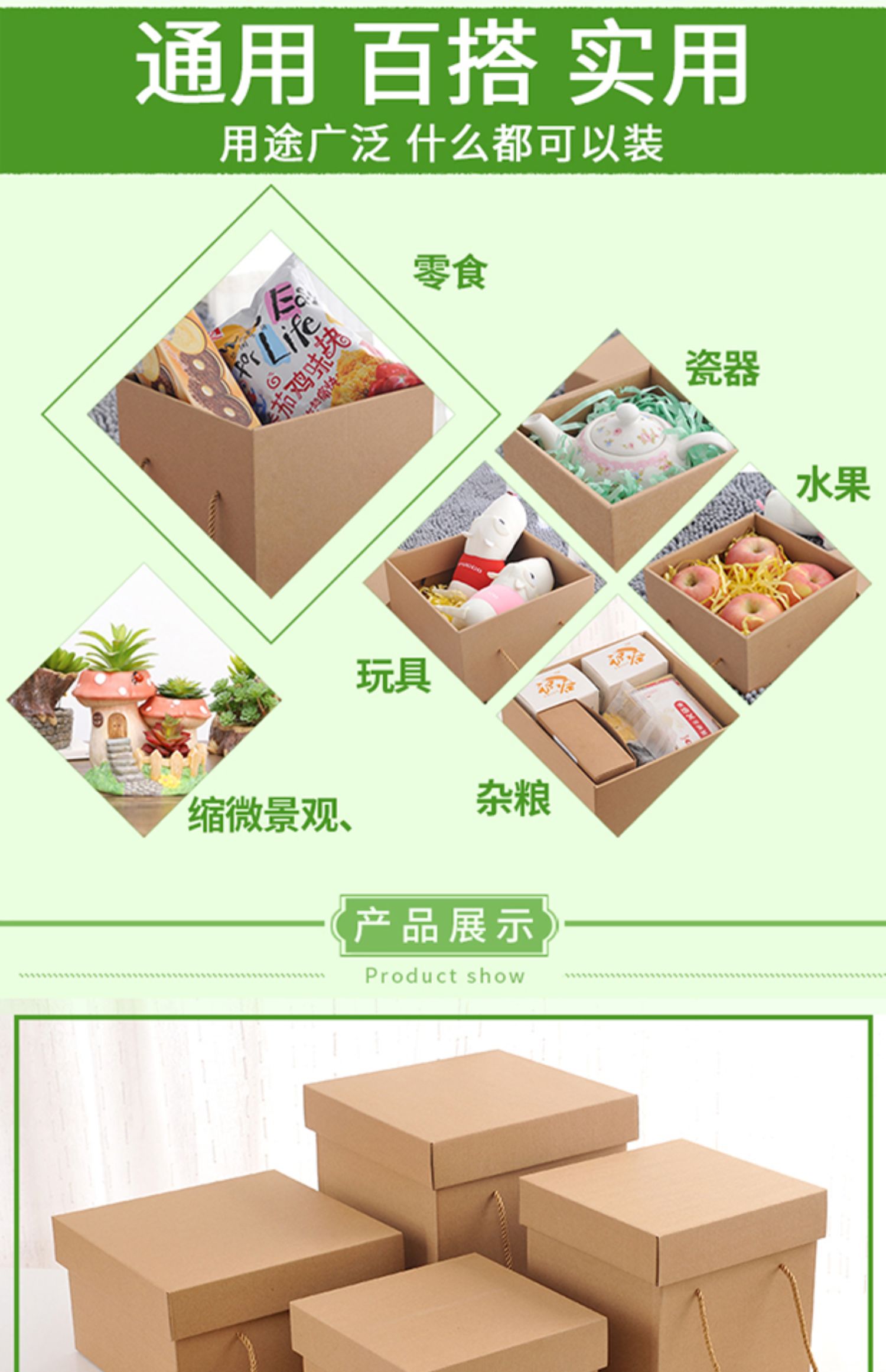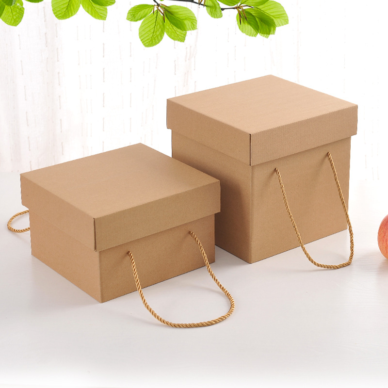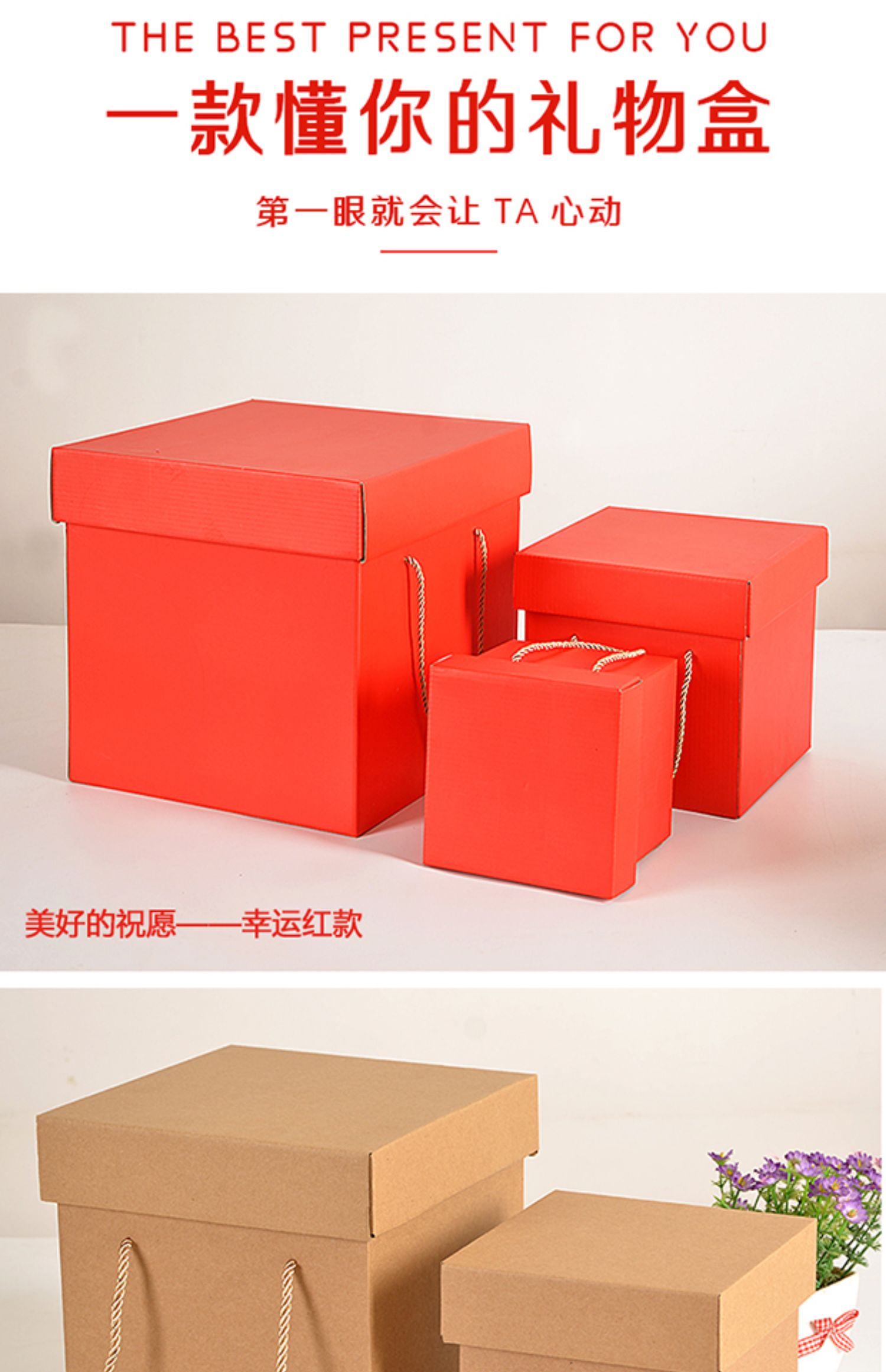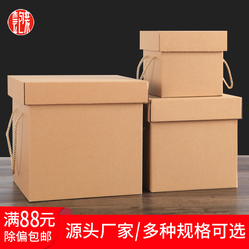 Подарочная коробка Подарочная Большая квадратная крышка Закуски Пустая коробка Портативная продажа Офис Упаковочная коробка Коровья бумажная коробка