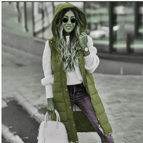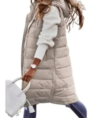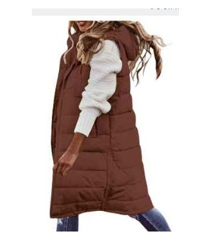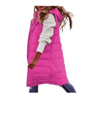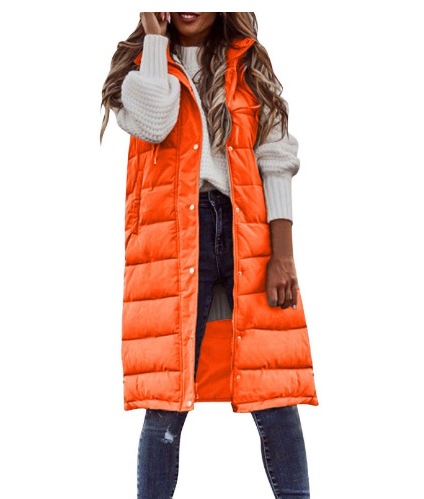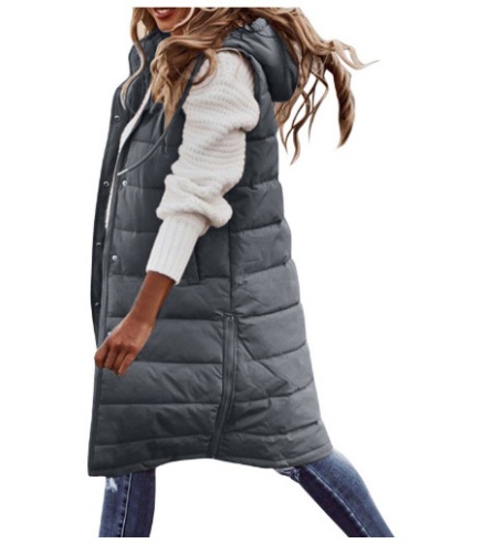 Q024 Европейский и американский Новый Модный повседневный однотонный приталенный элегантный кардиган без рукавов с капюшоном, длинная стеганая куртка