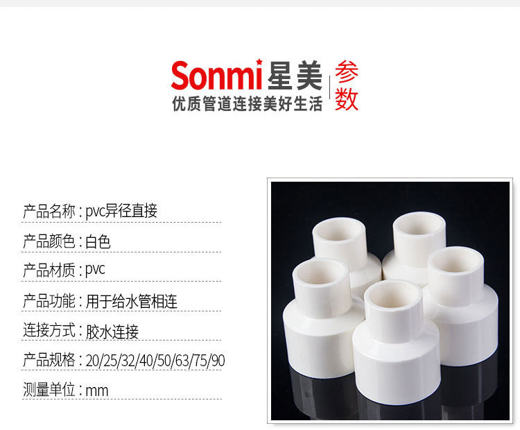 ПВХ редуктор трубный Соединительный переходник для трубы водоснабжения прямой Редуктор переходник для подачи воды 50