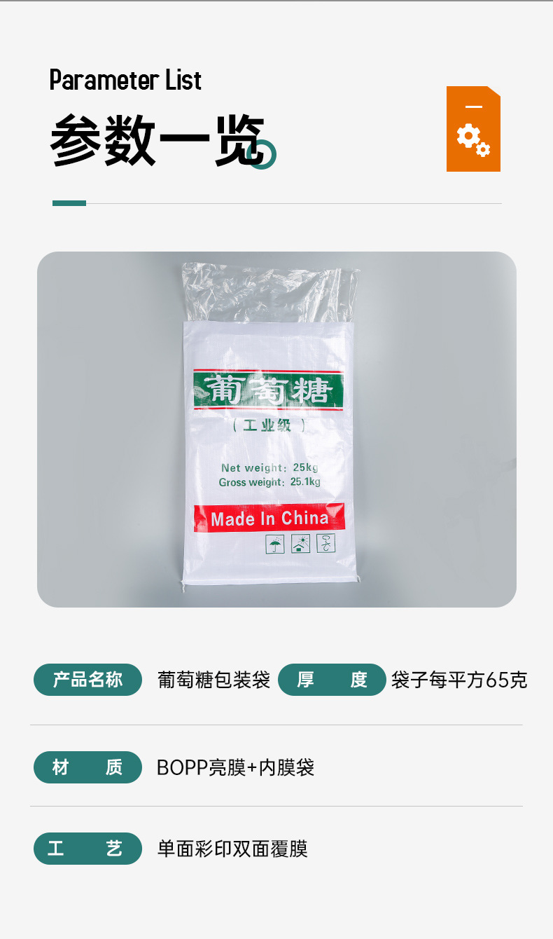 Промышленный пакет для упаковки глюкозы и белого сахара, тканый, из натриевой кислотной пленки OPP, с цветной печатью, композитный, пластиковый, для химикатов, 25kg