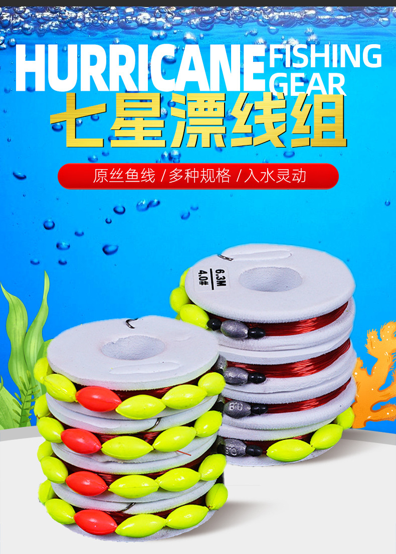 Традиционная рыболовная семизвездочная дрифтерная леска Групповой костюм с двойным крючком, одинарный крючок, плавающий рыболовный крючок, леска, привязанная к полному набору готовой продукции