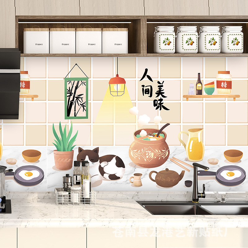 Кухонная маслостойкая наклейка Самоклеящаяся водостойкая устойчивая к высоким температурам утолщенная плита Наклейка на стену Украшение стен Плитка Обои