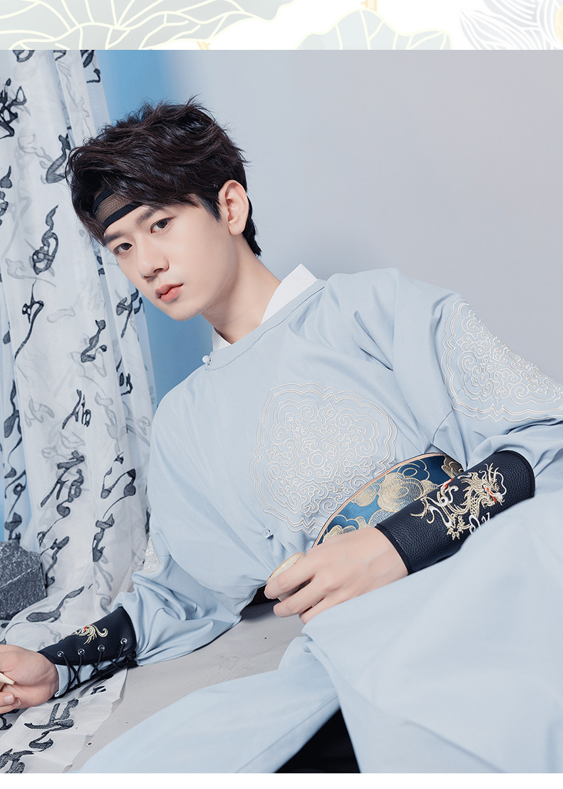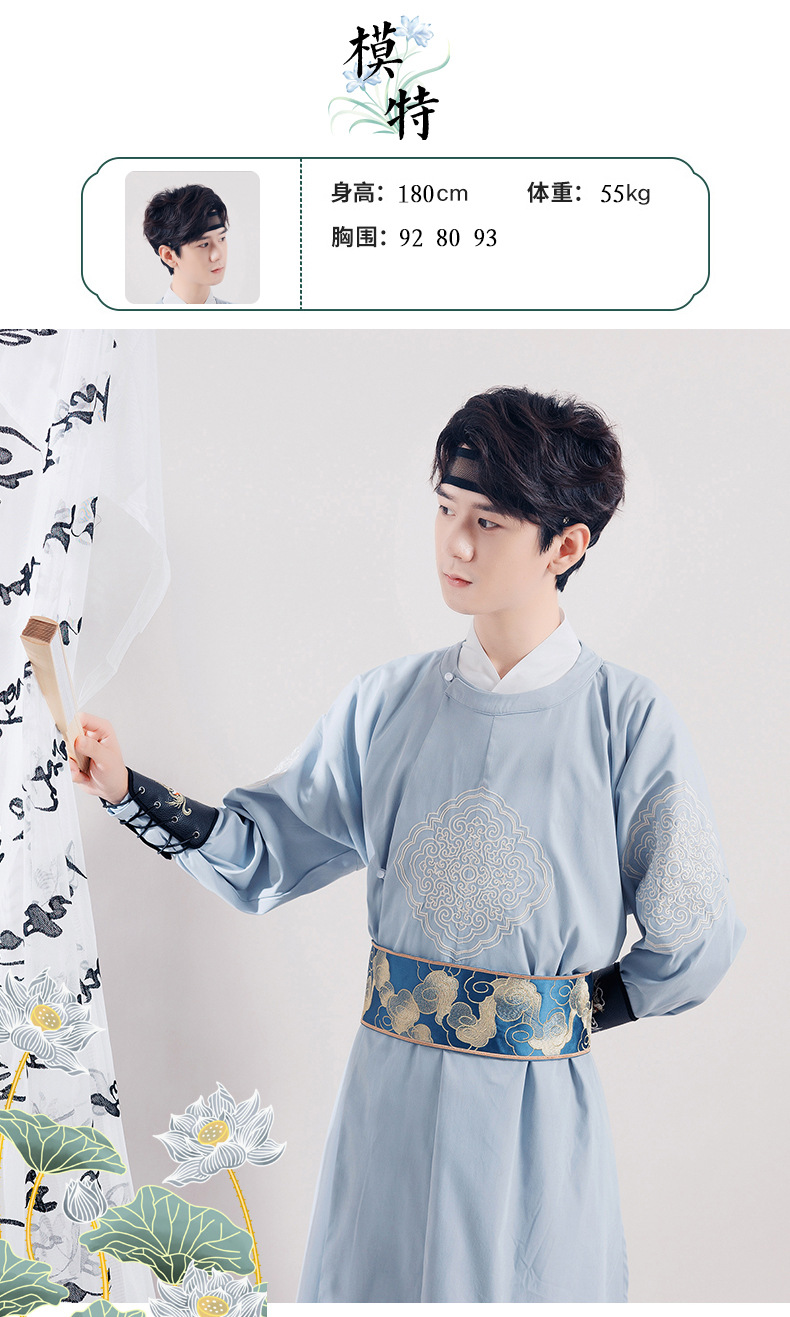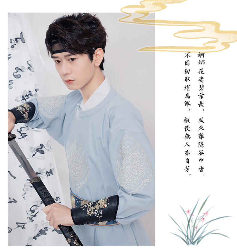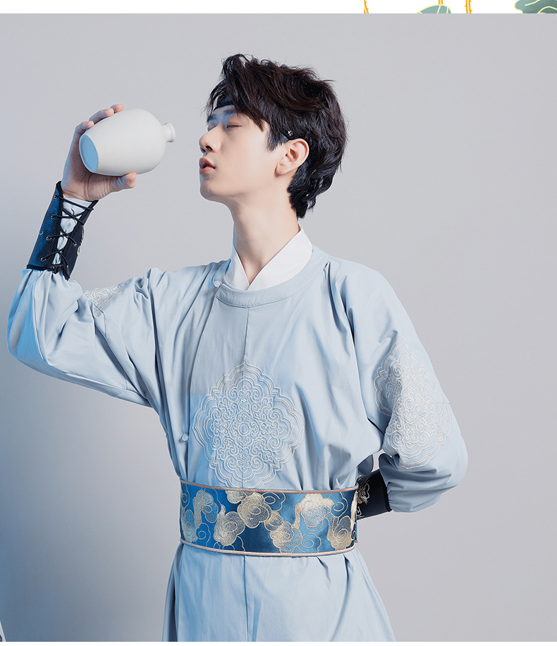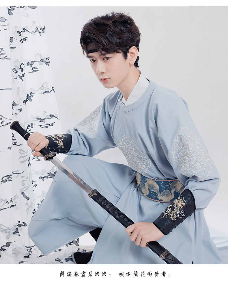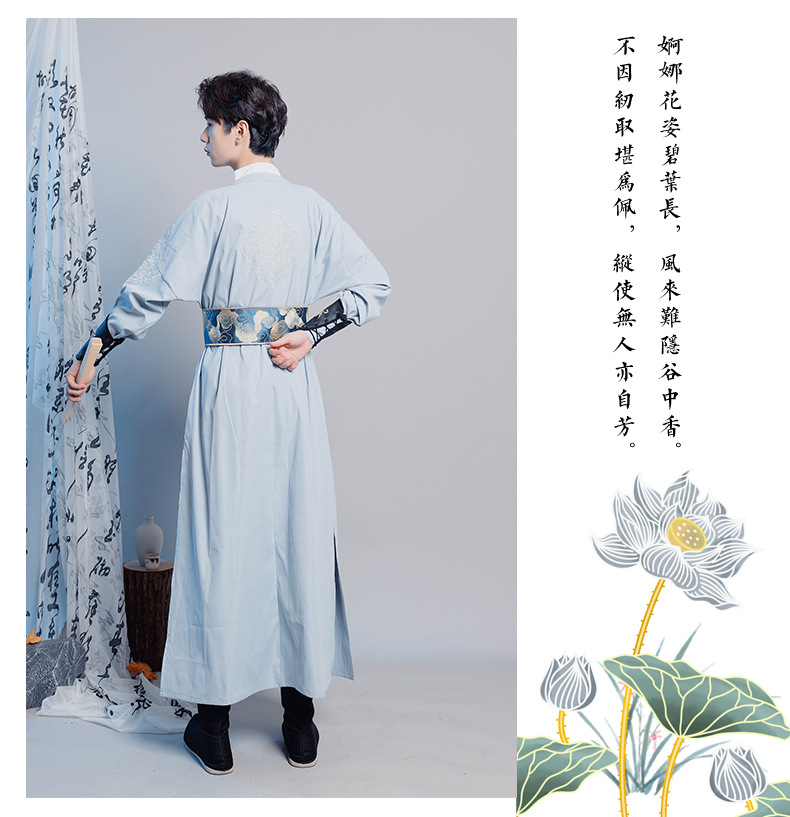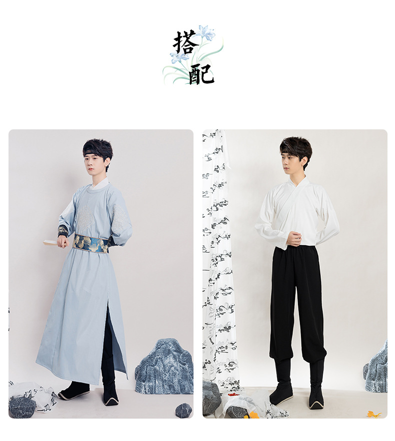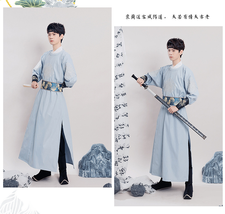 Древний костюм в китайском стиле для мужчин и женщин с вышитым халатом с круглым вырезом в одинаковом стиле Тан, костюм для боевых искусств средней длины и больших размеров в стиле Хань, осень и зима