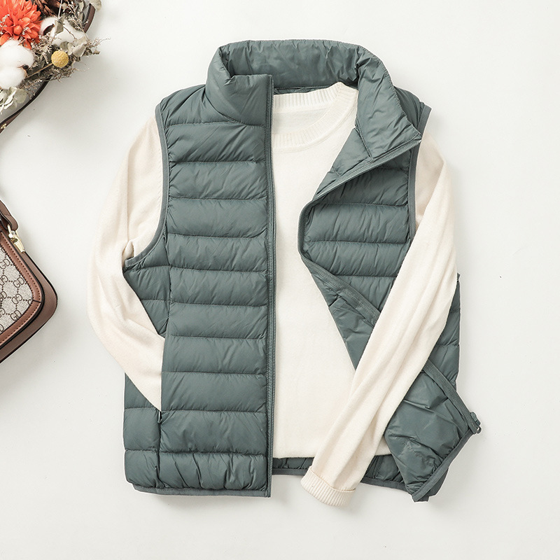 2023 Новый осенне-зимний легкий Короткий воротник-стойка, 90% белый утиный пух, теплый жилет, женская верхняя одежда
