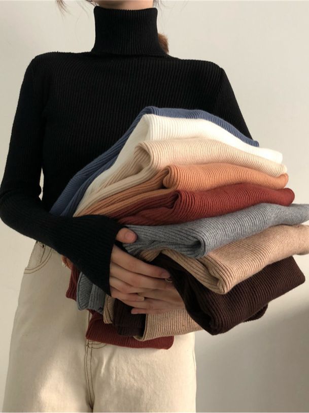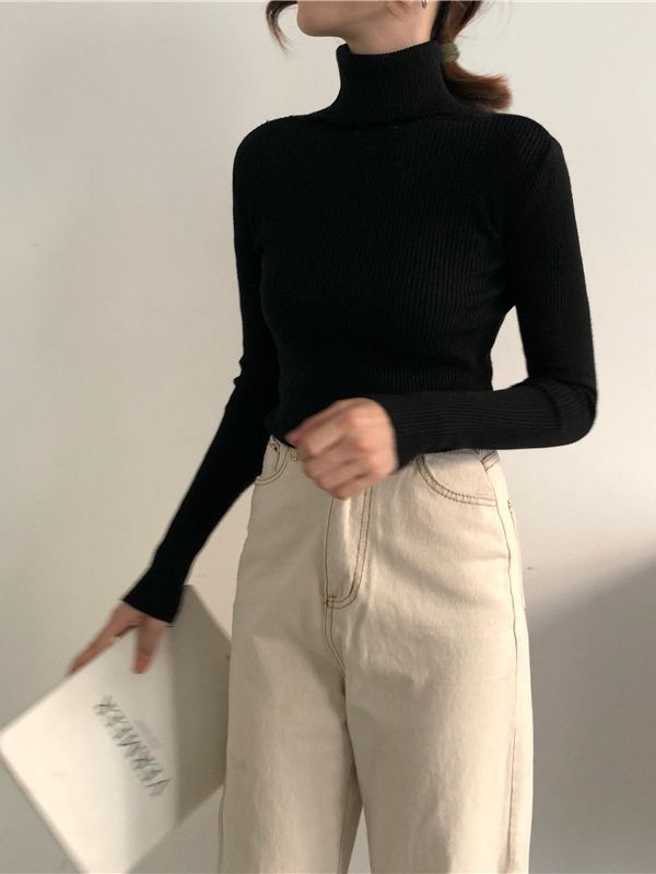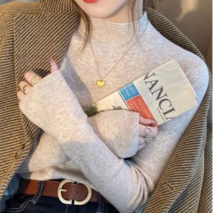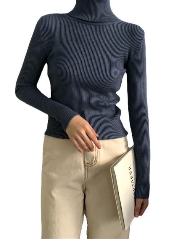 Свитер с высоким воротником для женщин, осень-зима 2025 года, тонкая трикотажная рубашка в корейском стиле с пуловерным топом с длинными рукавами для верхней одежды