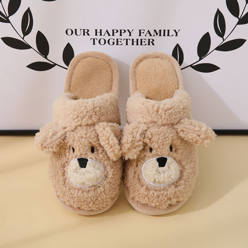 Зимние домашние Нескользящие хлопковые тапочки, женские плюшевые тапочки с мультяшным мишкой, тапочки, мягкие домашние пушистые тапочки оптом