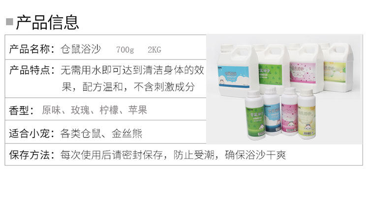 【商品特色】:经高温;保持环境干爽及清香;通过沐浴过程而加强运动量;极少粉末,可避免影响仓鼠的呼吸系统及眼睛受损;保持仓鼠身体干爽,可脱毛及各种皮肤病症。