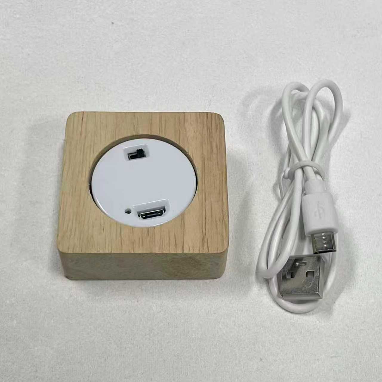 Креативная светодиодная светящаяся круглая квадратная деревянная основа из цельного дерева, USB-разъем для зарядки, сенсорный пульт дистанционного управления, основание хрустального шара