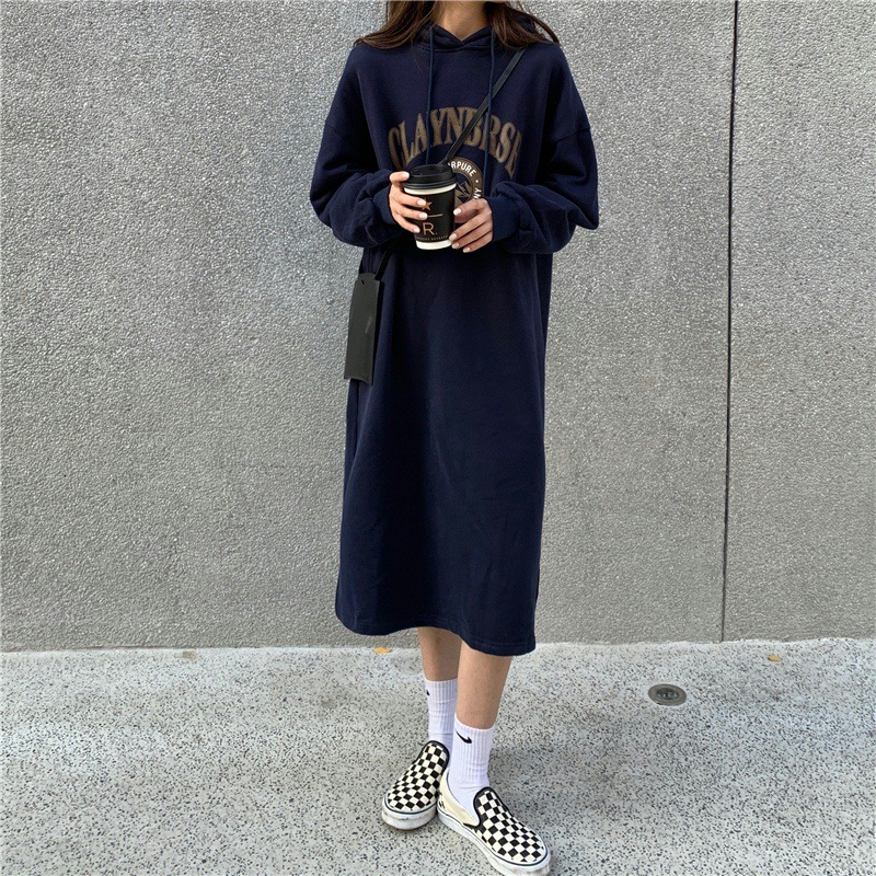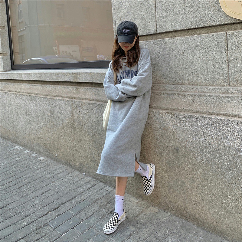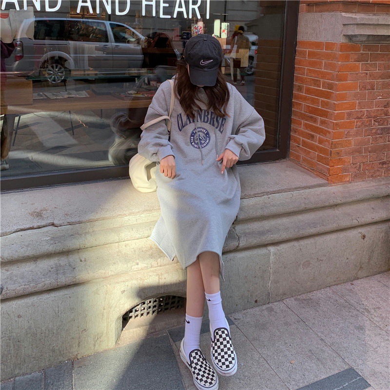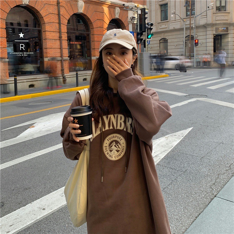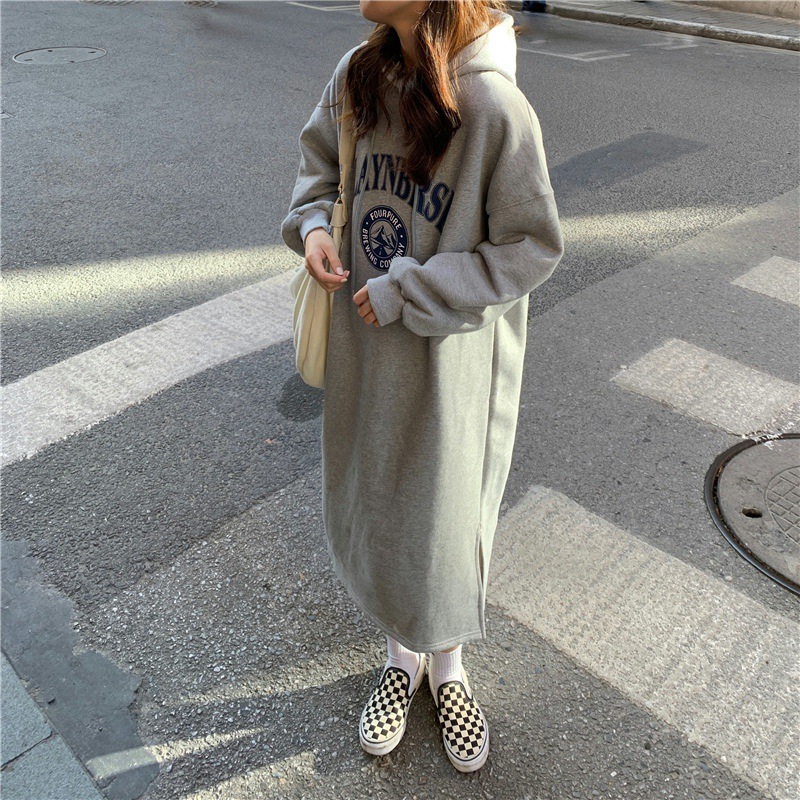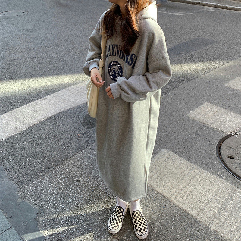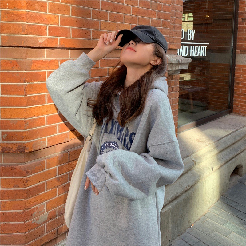 Осень/зима 2025, корейский стиль, толстая толстовка с капюшоном выше колена на флисовой подкладке, свободная женская куртка больших размеров с принтом.