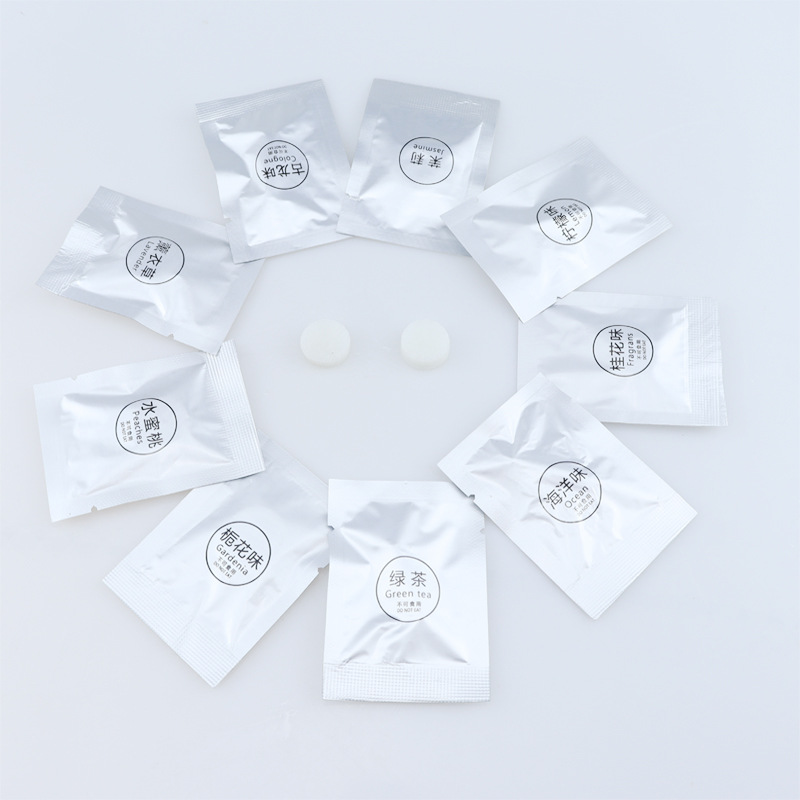Зеленый чай; Океан; Османтуса; Лимон; Жасмин; Древний дракон; Лаванда; Персик; Цветок; Шанель; Прекрасная жизнь; Розы; Мята; Обычный белый таблеточный препарат, в индивидуальной упаковке, без вкуса.