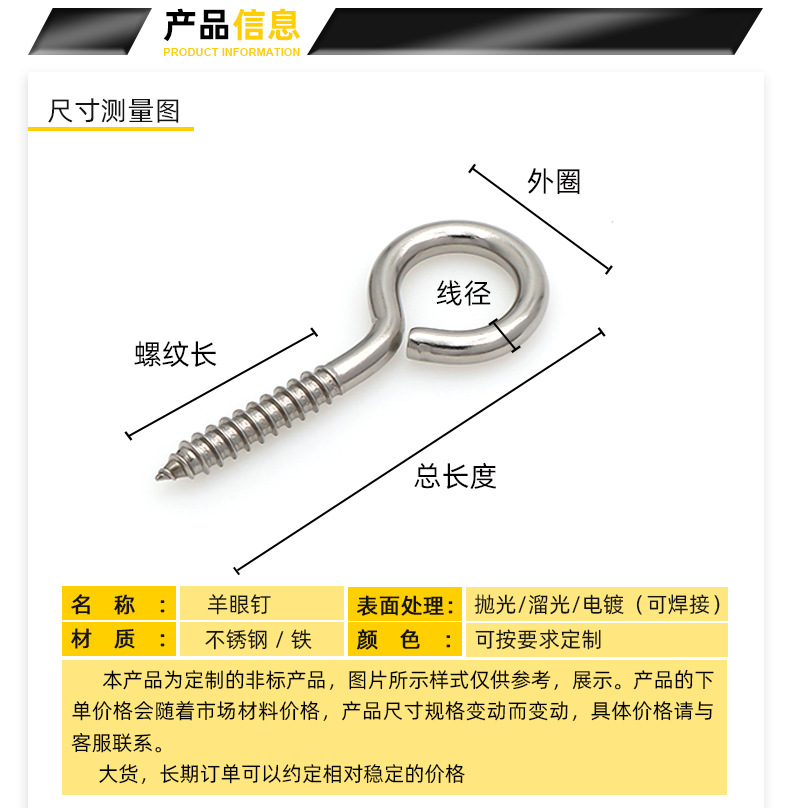 Заводская поставка из нержавеющей стали овечий глаз гвоздь прямые продажи овечий глаз нить металлический гвоздь в виде овечьего глаза мульти-спецификации овечий глаз винтовое кольцо