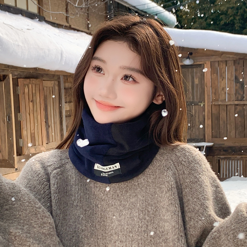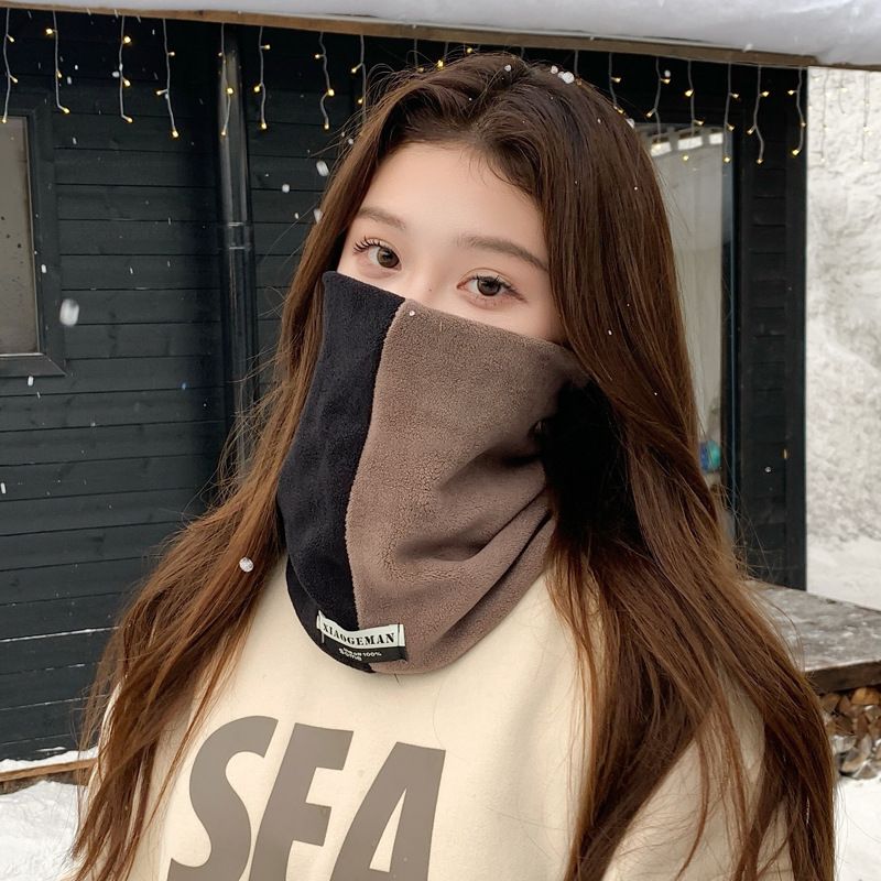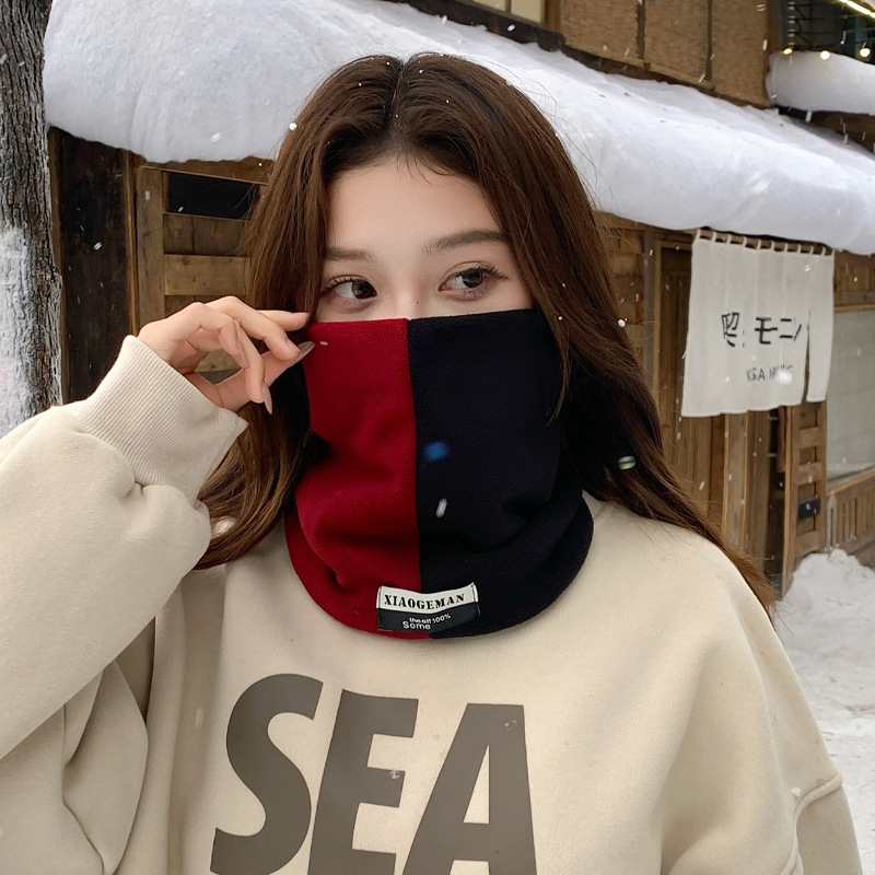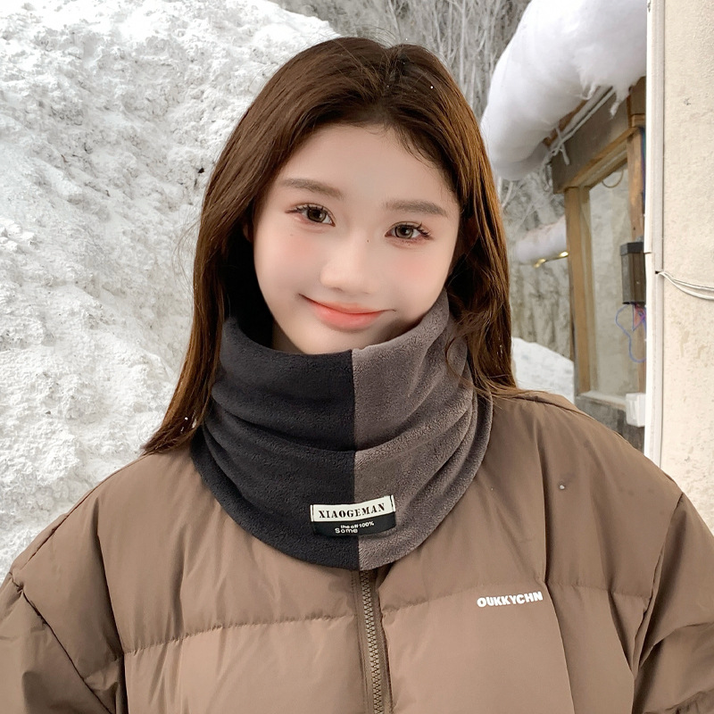 Зимний утепленный флисовый шарф-бандана с двойным слоем, модный уличный унисекс-пуловер с цветовыми блоками, в наличии, защита для шеи