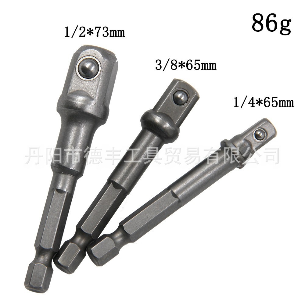 使用方法:适用于螺丝刀手柄或者电动起子工具(六角孔或者三爪夹头均可)驱动套筒使用,安装上后可把六边形接头转换为方头,从而可以用于套筒的安装,转换的利器。