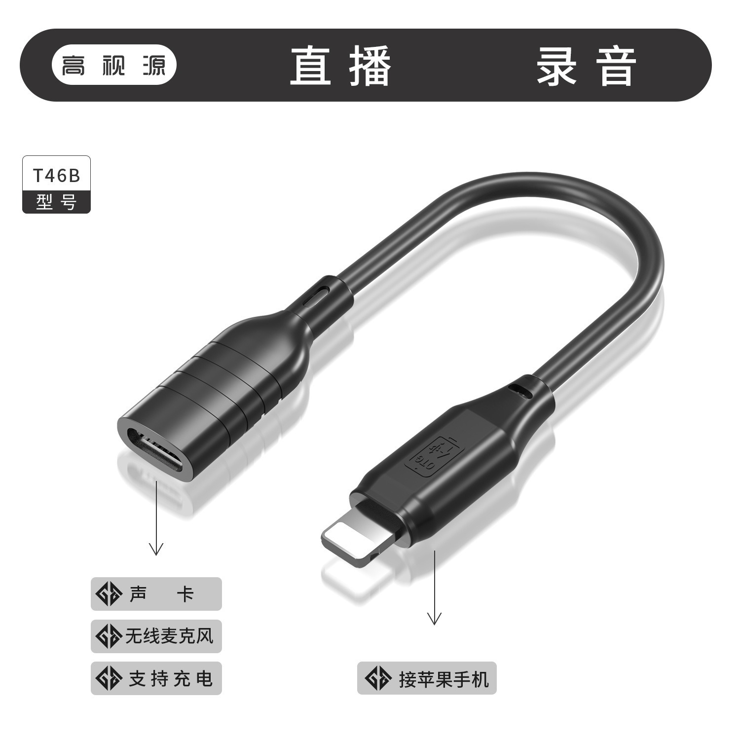 OTG-кабель для прямых трансляций: одновременная зарядка и трансляция, низкая задержка, передача без потерь, удлинённый кабель для прямых эфиров.
