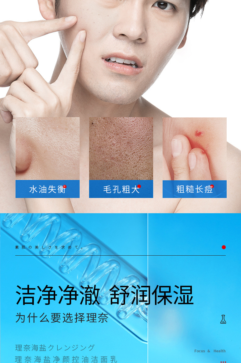 Linai Men's Sea Salt Очищающая и Oil Control Очищающее средство для лица серии