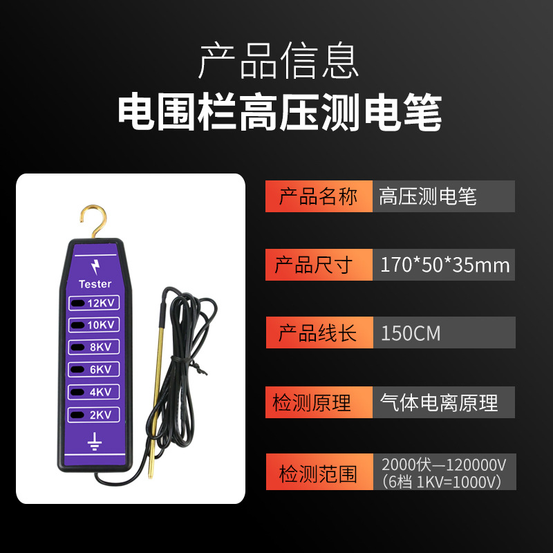 新款电子围栏测电仪,量程12KV,6档位显示2KV 4KV 6KV 8KV 10KV 12KV,
