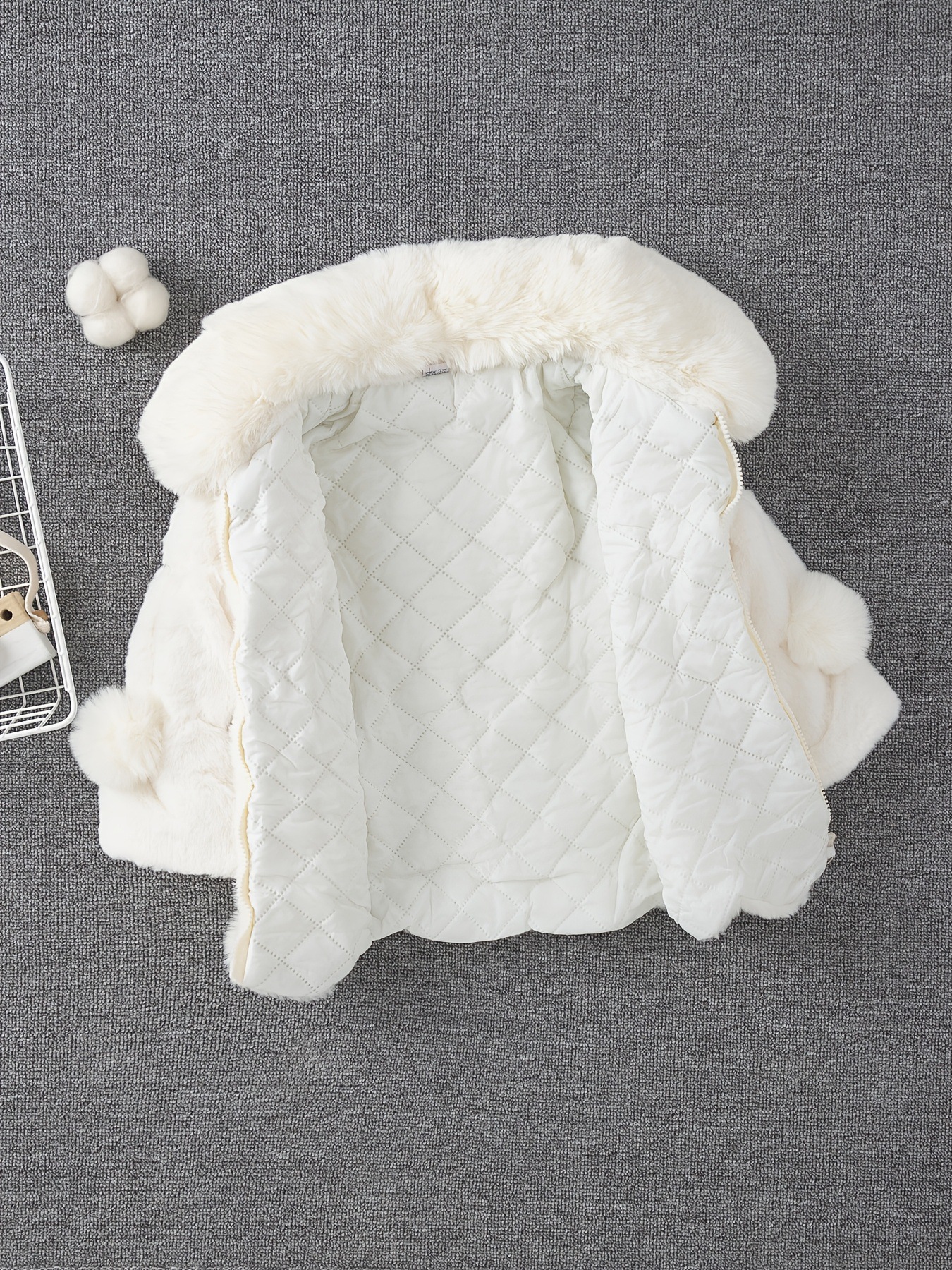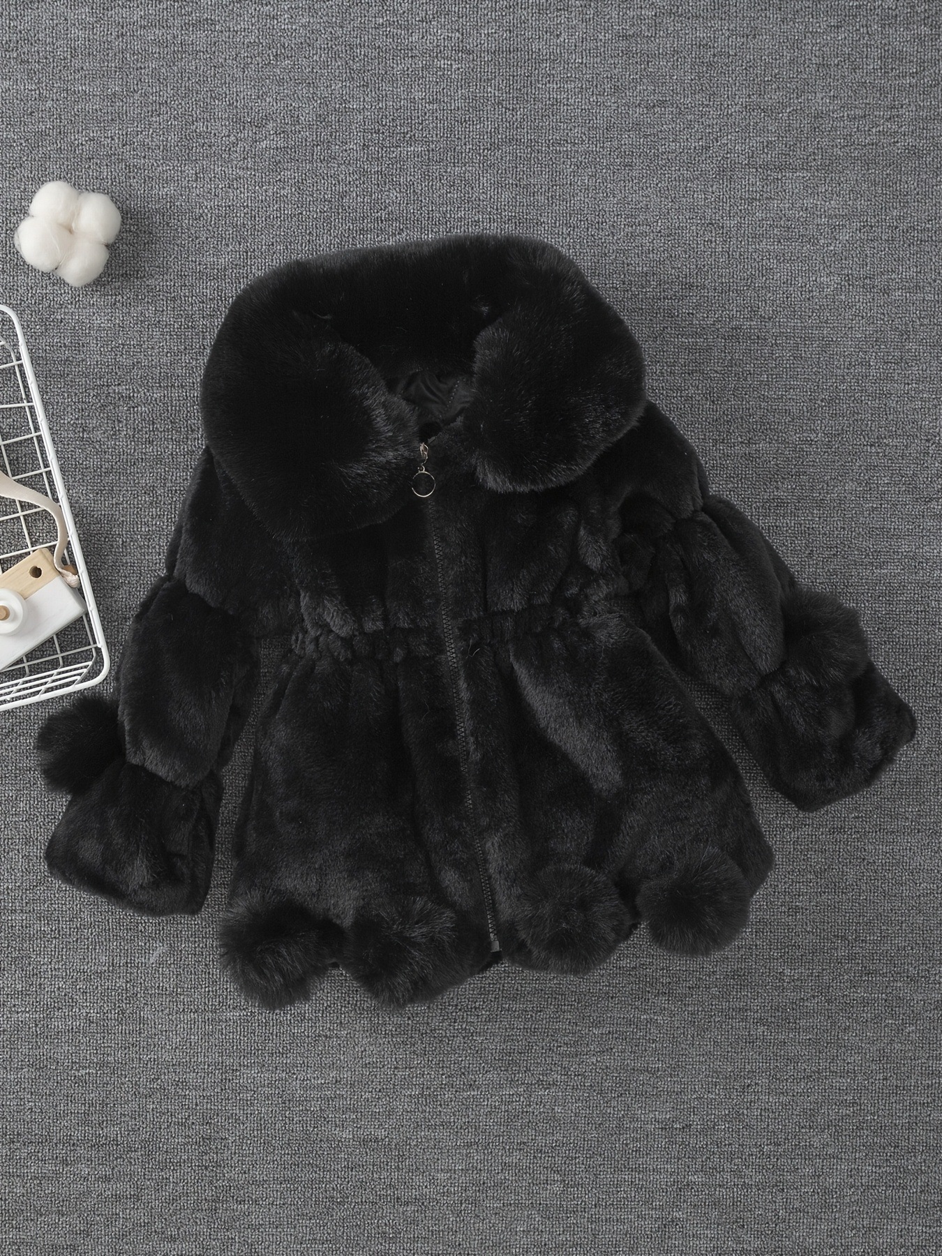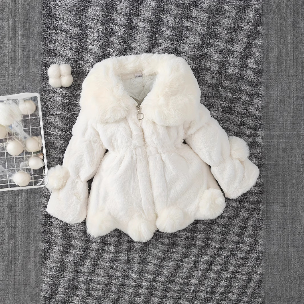 Детская одежда для внешней торговли, осень и зима для девочек, новый свитер, детский искусственный мех, большой меховой воротник, меховой шар, толстое хлопковое пальто, прилив