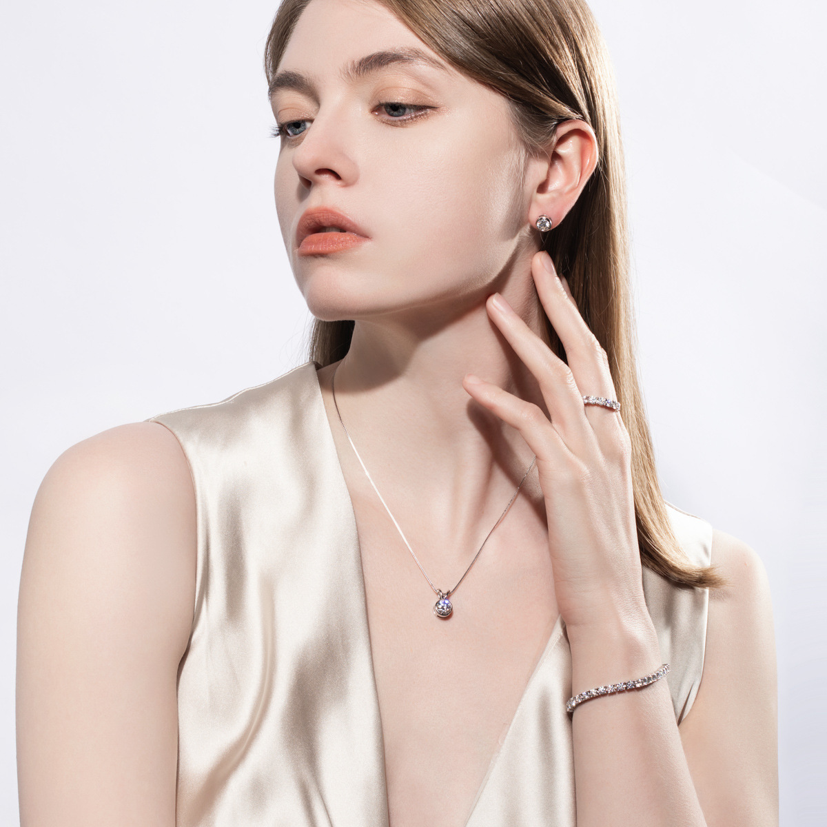 K белый - 1 пара серег (включая подарочную коробку и сертификат GRA); K yellow - 1 пара серег (включая подарочную коробку и сертификат GRA); Кулон в виде сумки с муассанитом из серебра 925 пробы + цепочка из серебра 925 пробы в форме буквы "О", длина 40+2+3 см (включая подарочную коробку и сертификат GRA).