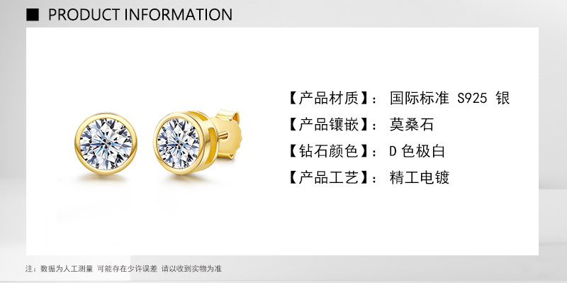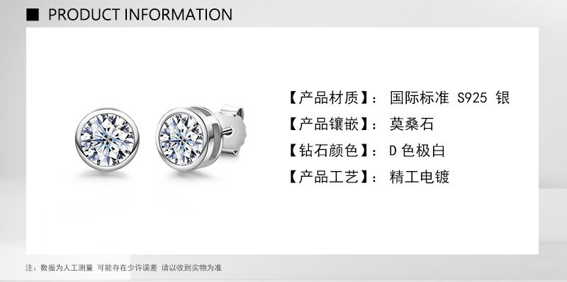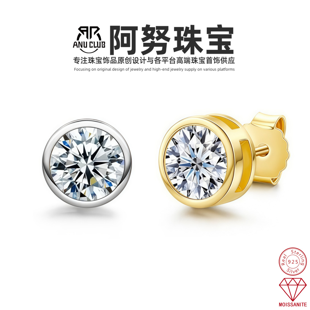 Простые и классические серьги-гвоздики из стерлингового серебра 925 пробы с круглым муассанитом, легкие роскошные аксессуары для женщин, ювелирные изделия для трансграничной оптовой торговли в Юго-Восточной Азии.