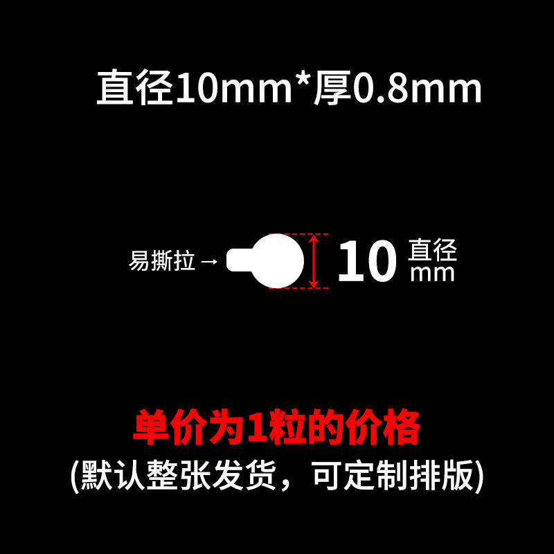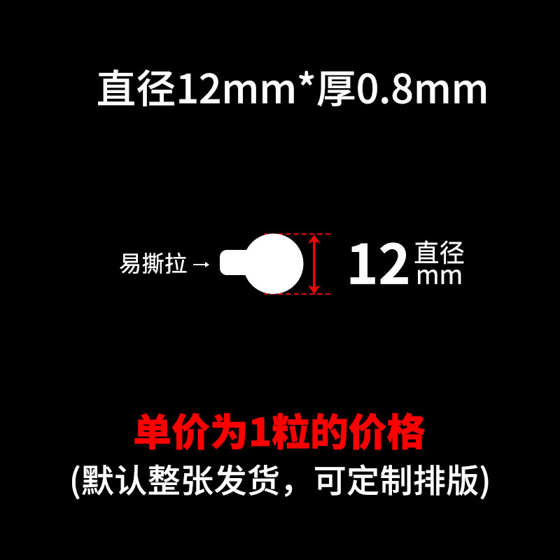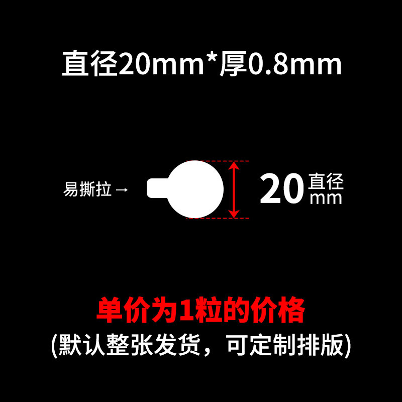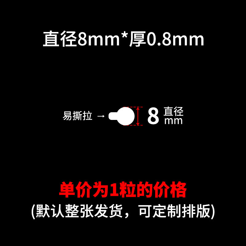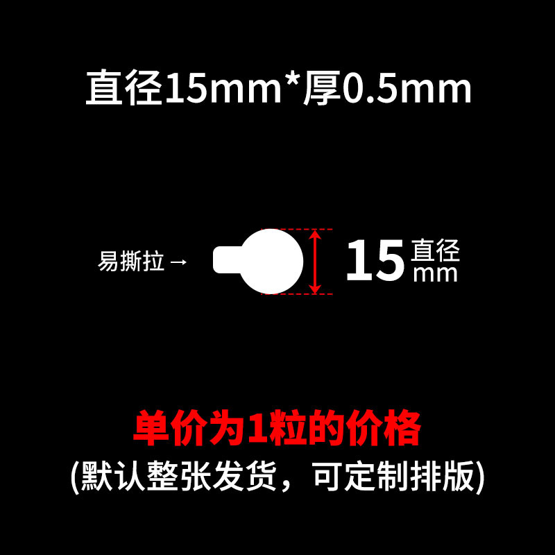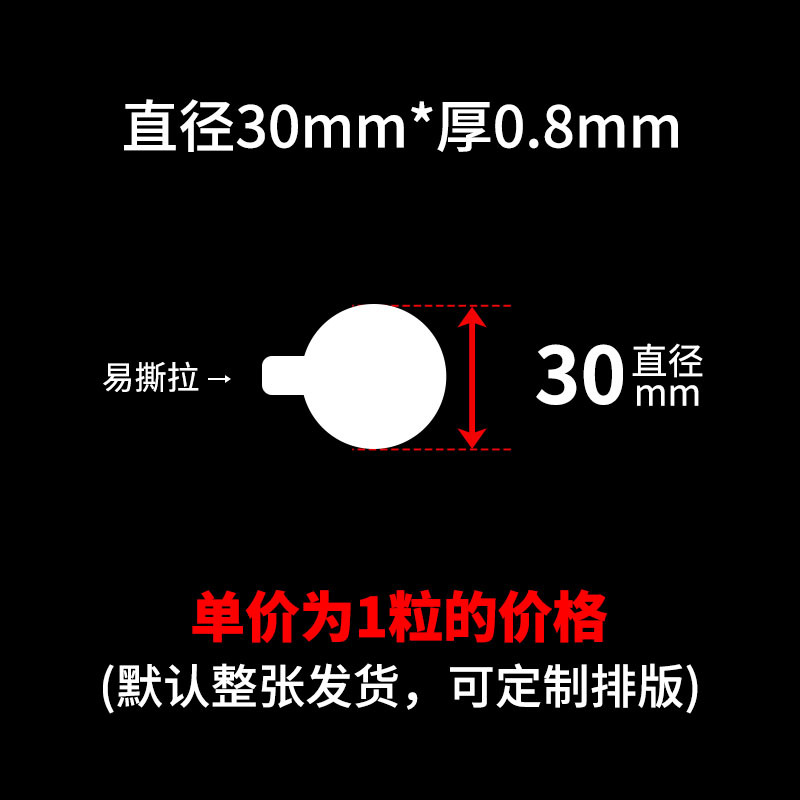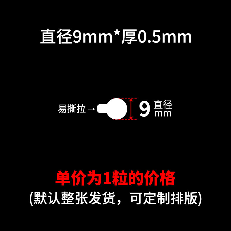 买家须知:本链接SKU都是单粒的价格,可支持定制任意尺寸厚度,可按要求排版,底纸可搭配白纸或者透明底,出货要求可半断 全断 整版 整包出货!量大价优,详情咨询客服!!!点胶,亚克力双面胶,圆点胶,无痕胶,纳米胶,布基胶带,网格双面胶,春联双面胶