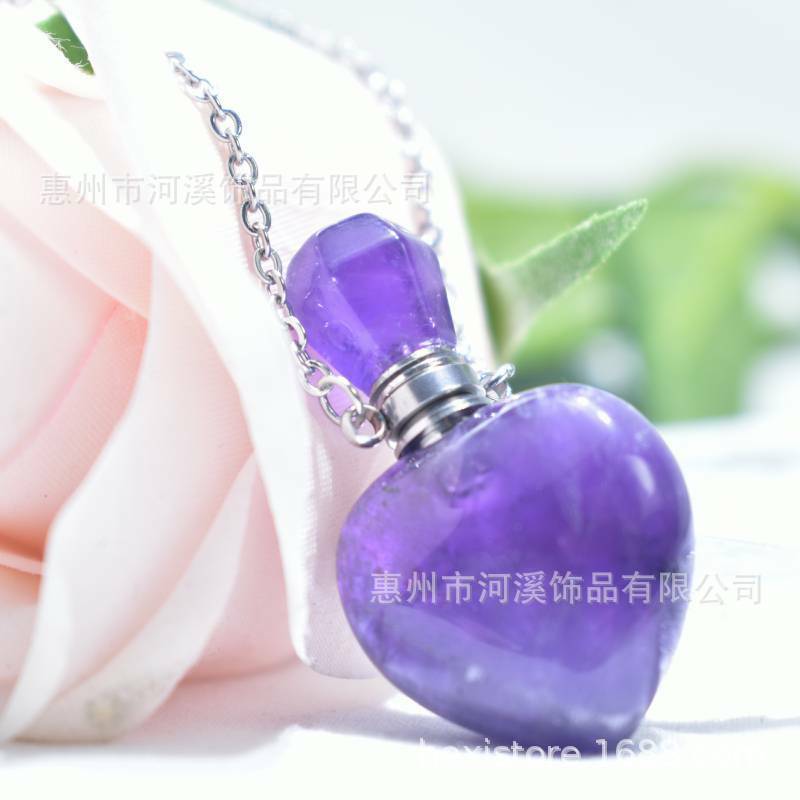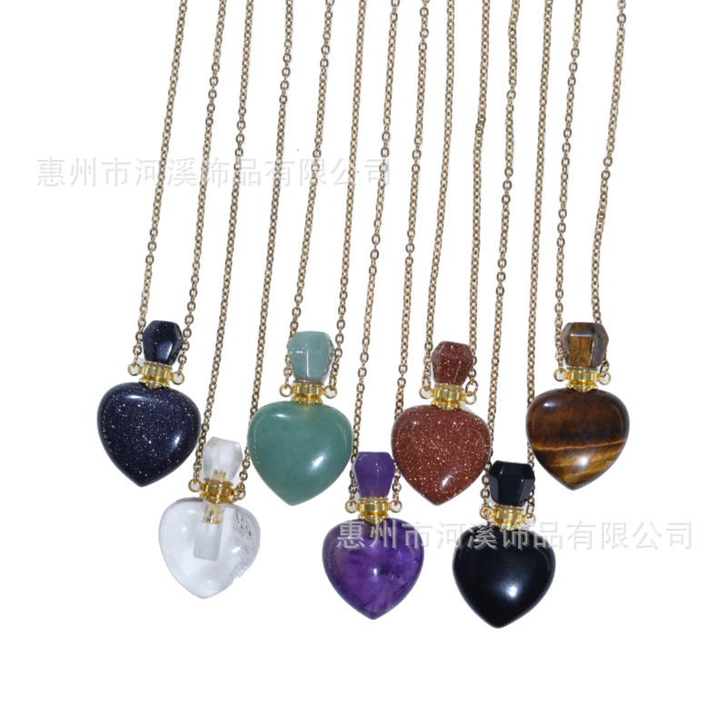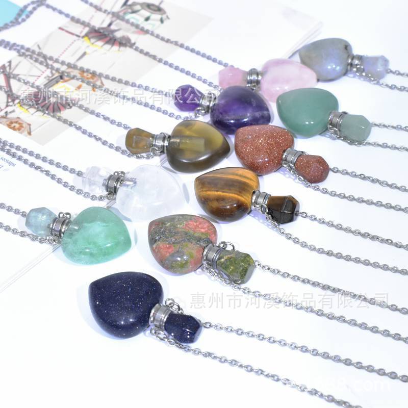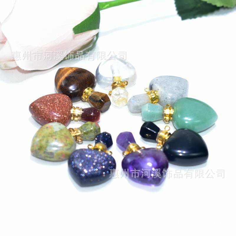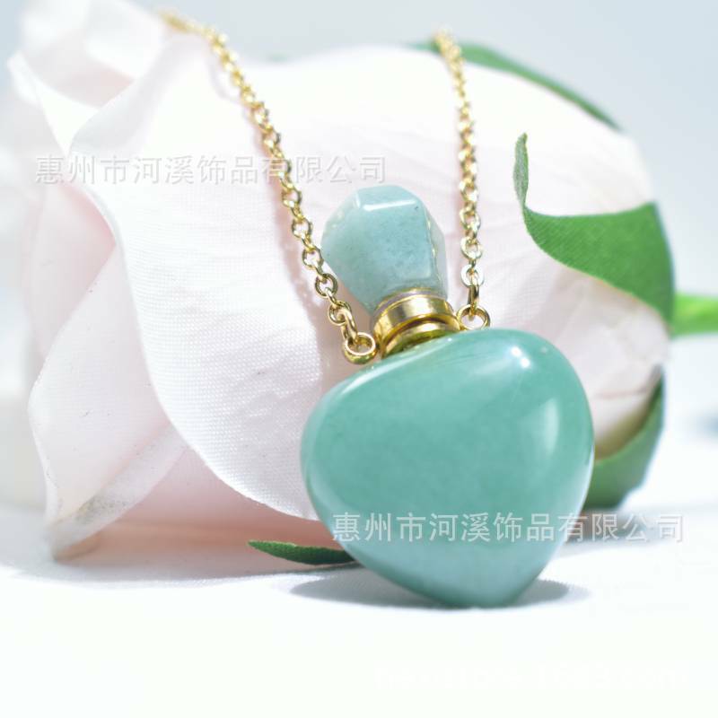 Источник завод прямой бутылка масла натуральный камень Любовь в форме сердца Аромат кулон порошок Кристалл нефрита флакон духов