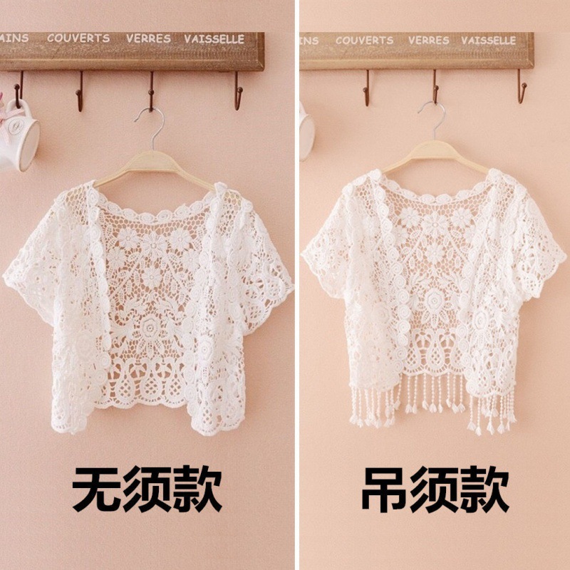 Кружевное маленькое пальто с шалью, Летняя короткая верхняя одежда, тонкий кардиган, Солнцезащитная одежда, Женский Универсальный жилет с юбкой-слингами