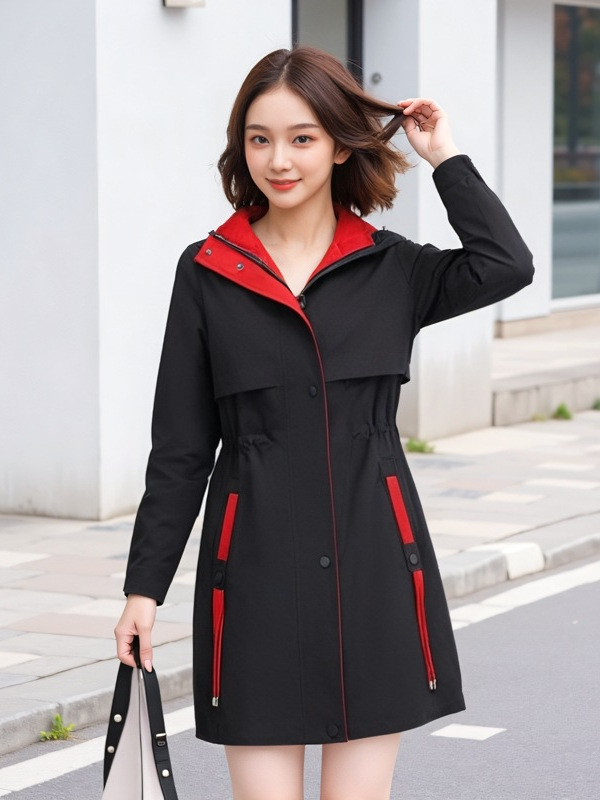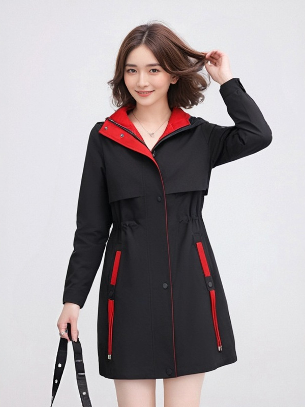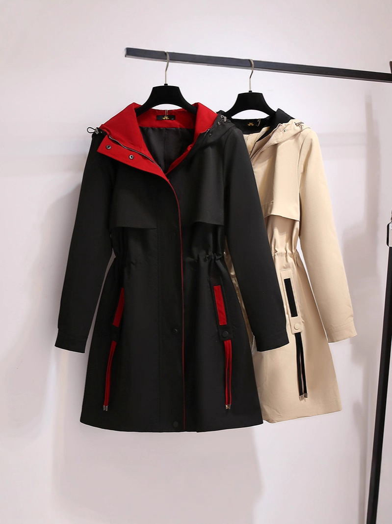 Большой размер с капюшоном ветровка для женщин длинная осень 2024 новая корейская версия свободная и тонкая повседневная дикая куртка