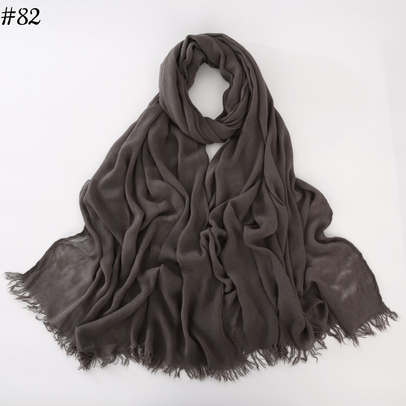 Новый заводской прямой продажи через границу, однотонный натуральный морщинистый шарф из вискозы с двумя концами, длинный шарф в европейском и американском стиле, на Ближнем Востоке