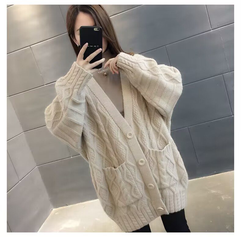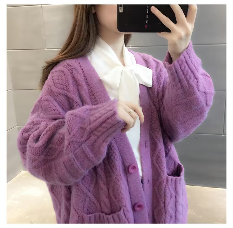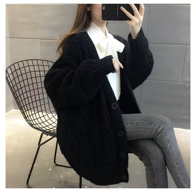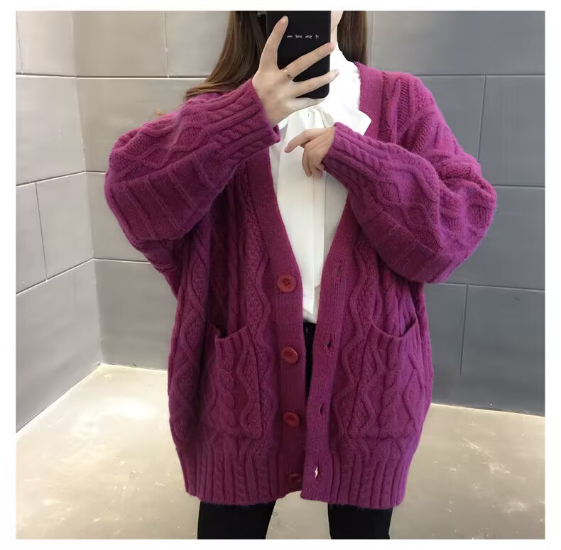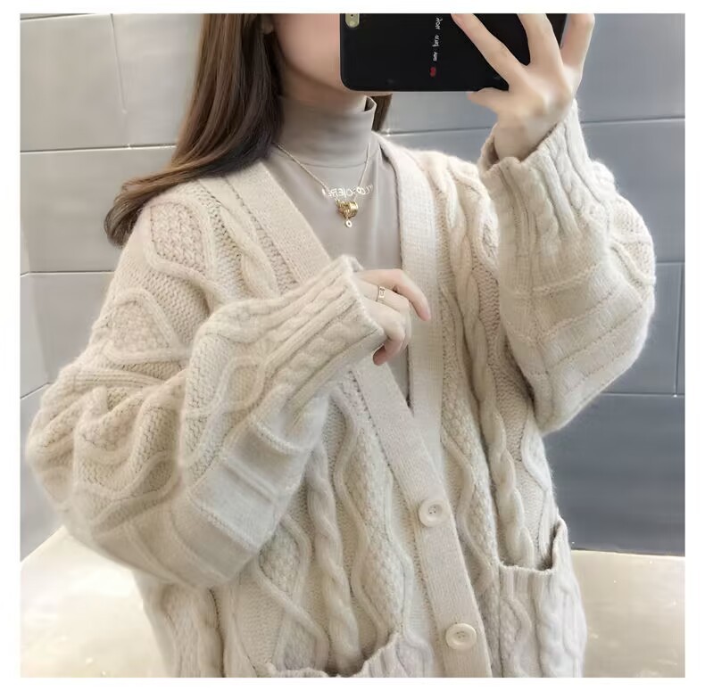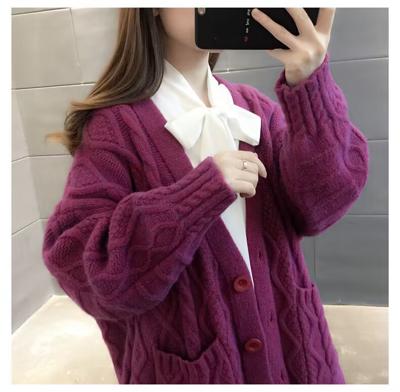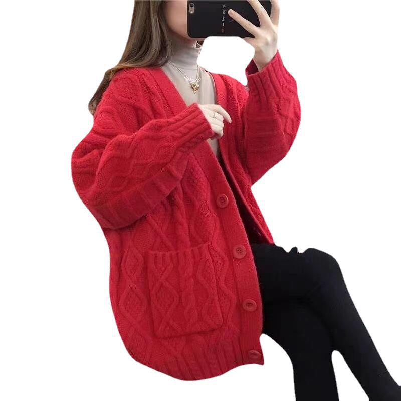 Однотонный свитер-пальто Twist для женщин, свободный вязаный кардиган, новинка осени/зимы 2024 года, утолщенный топ больших размеров.
