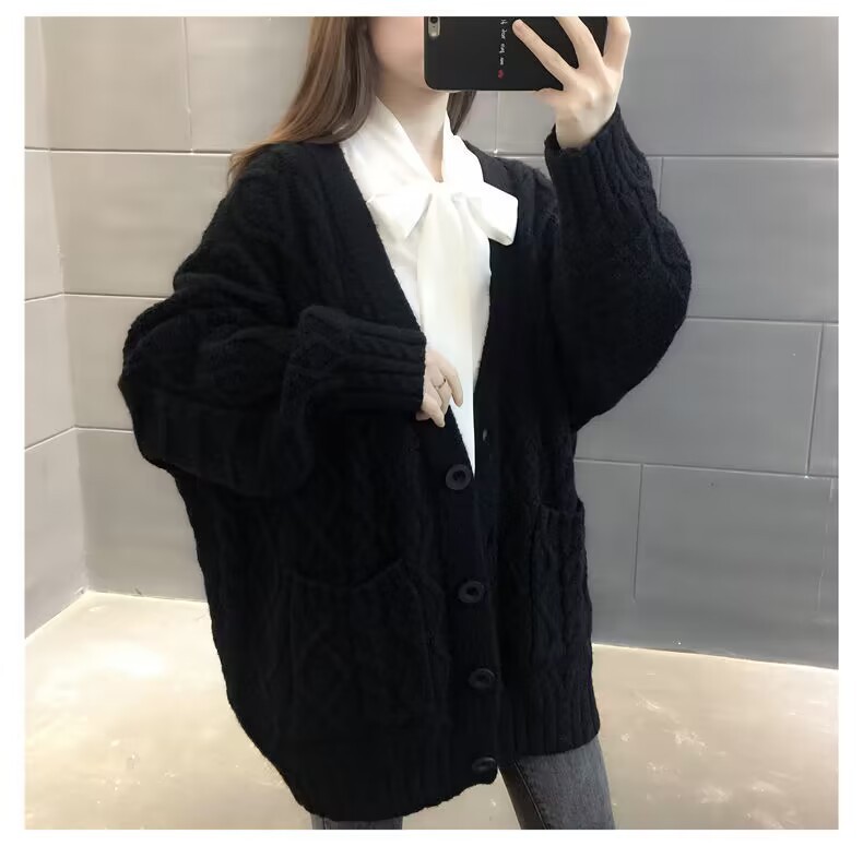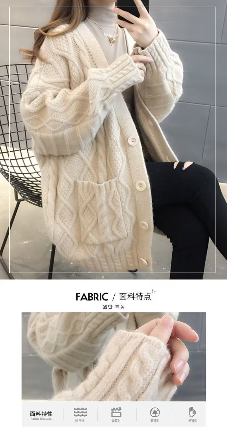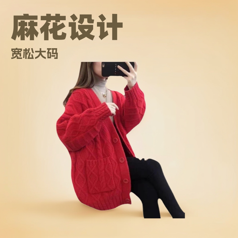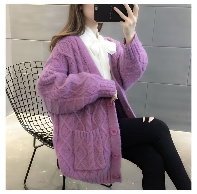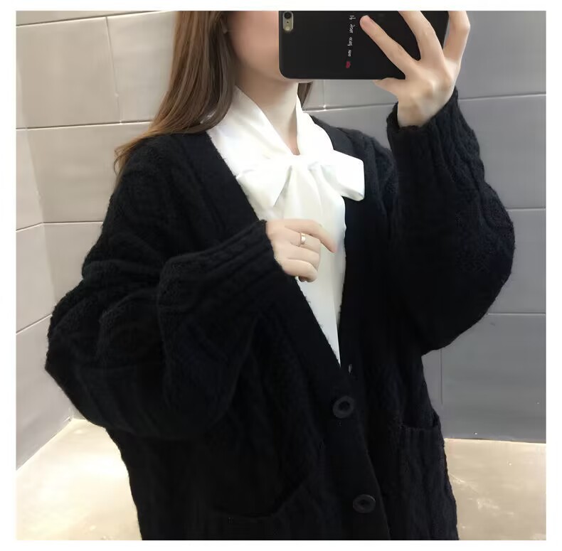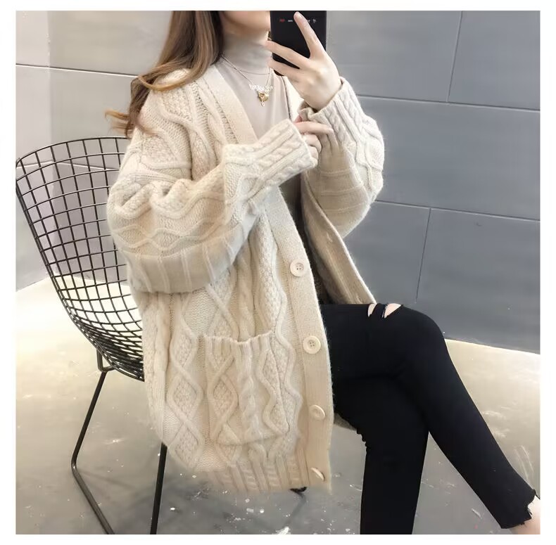 Однотонный свитер-пальто Twist для женщин, свободный вязаный кардиган, новинка осени/зимы 2024 года, утолщенный топ больших размеров.