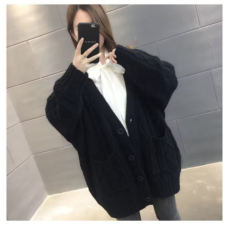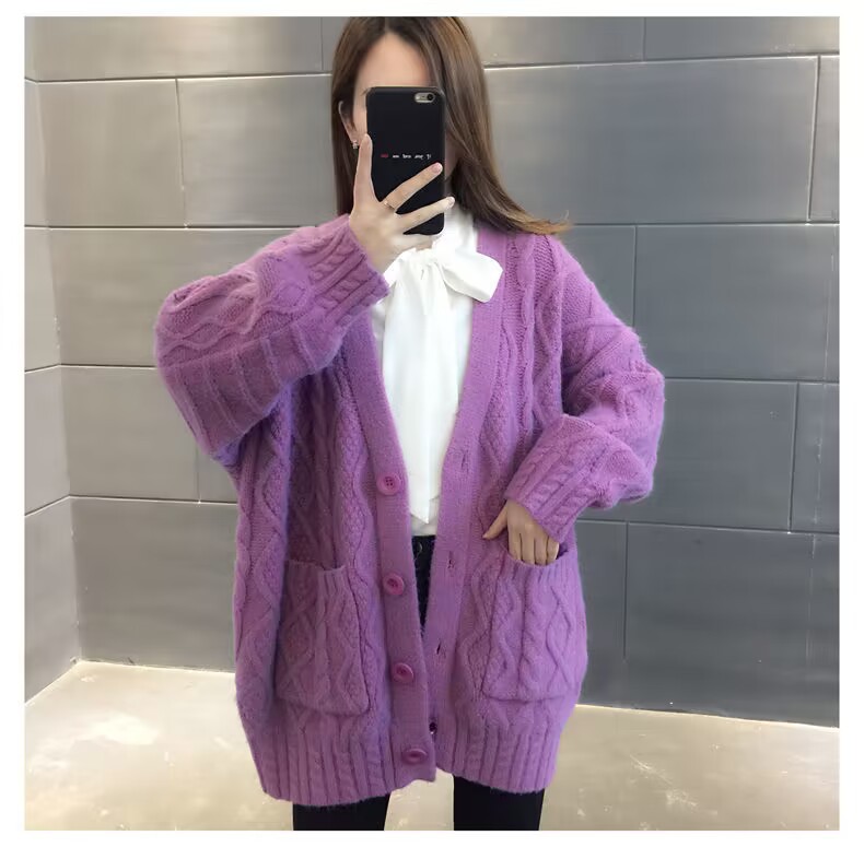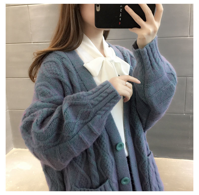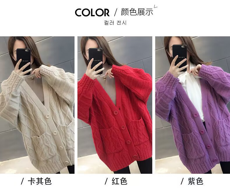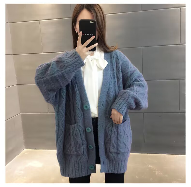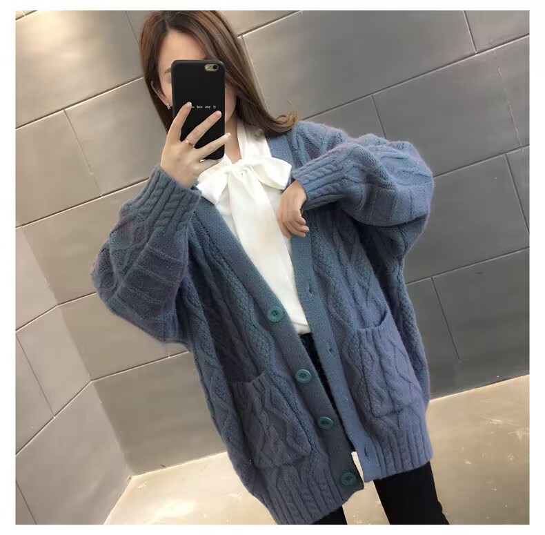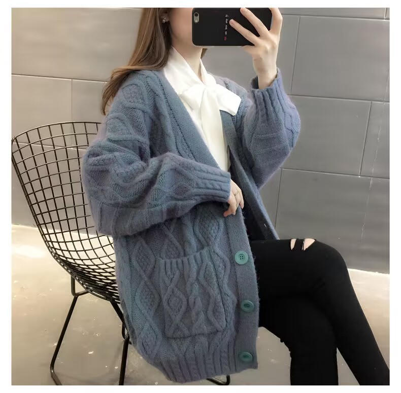 Однотонный свитер-пальто Twist для женщин, свободный вязаный кардиган, новинка осени/зимы 2024 года, утолщенный топ больших размеров.
