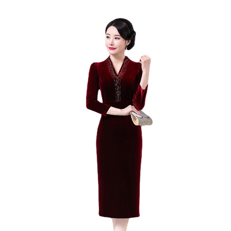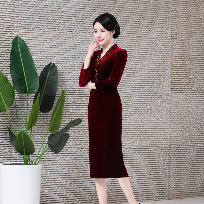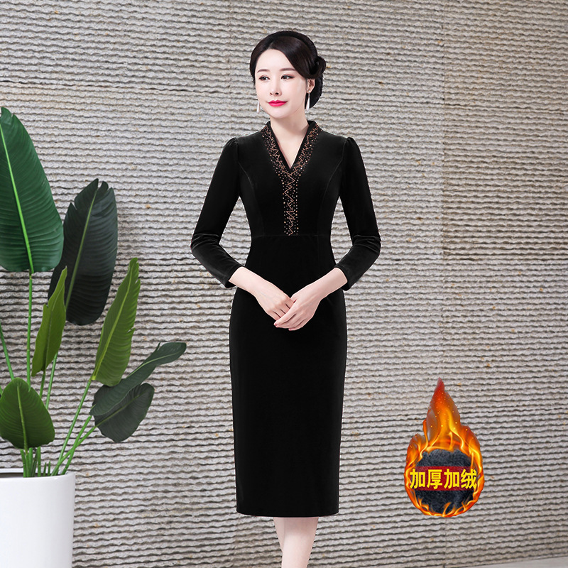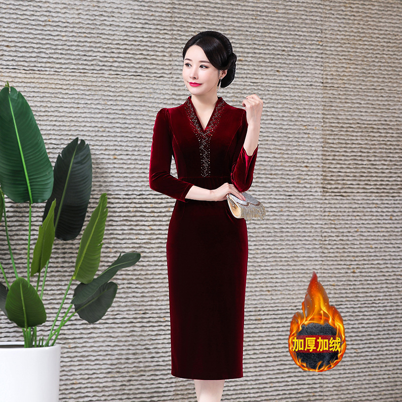 Утепленное платье-Чонсам на флисовой подкладке, новая мода 2021, Осень-зима, приталенное бархатное платье-чонсам, элегантное приталенное платье средней длины