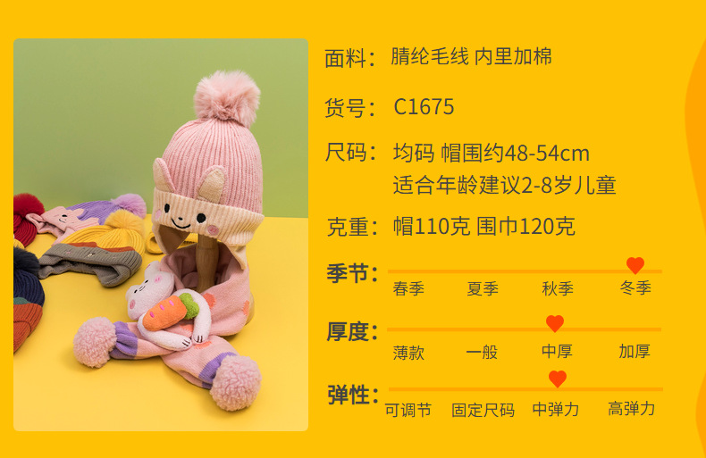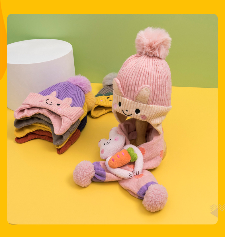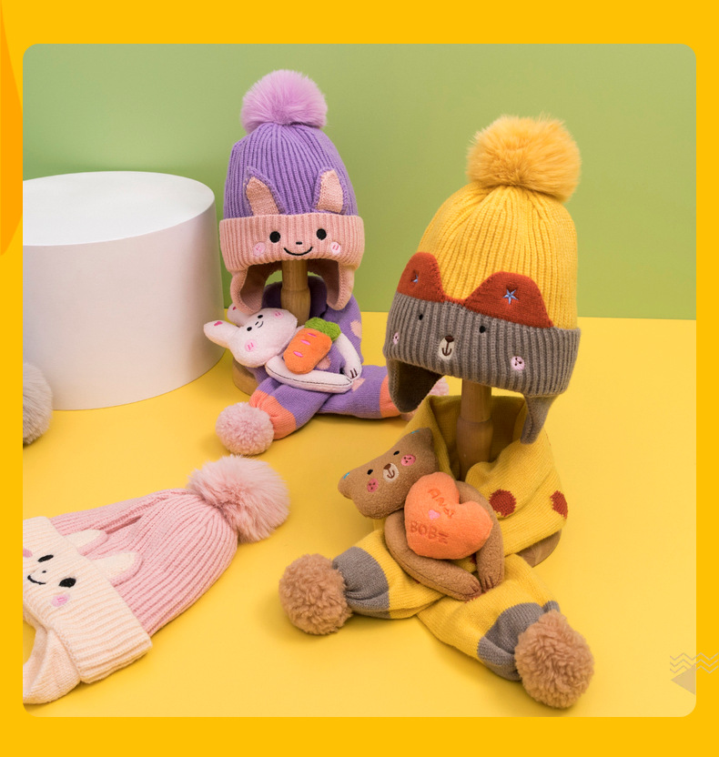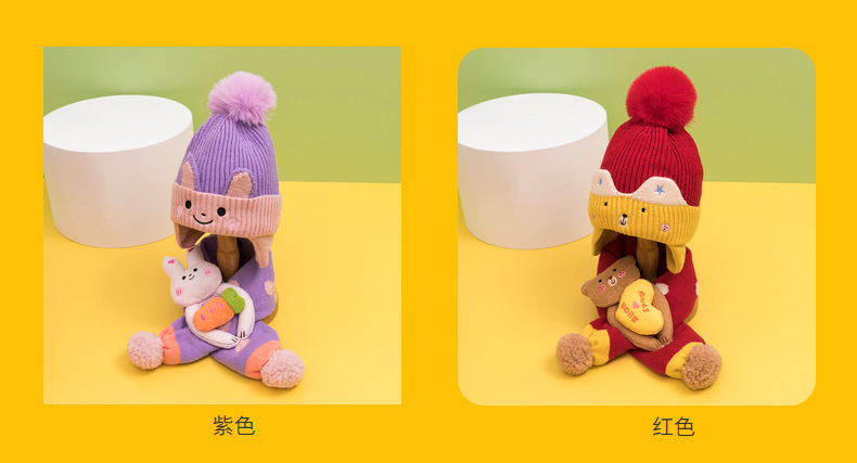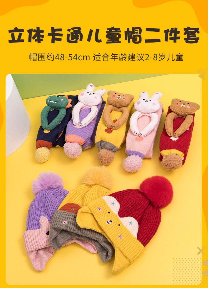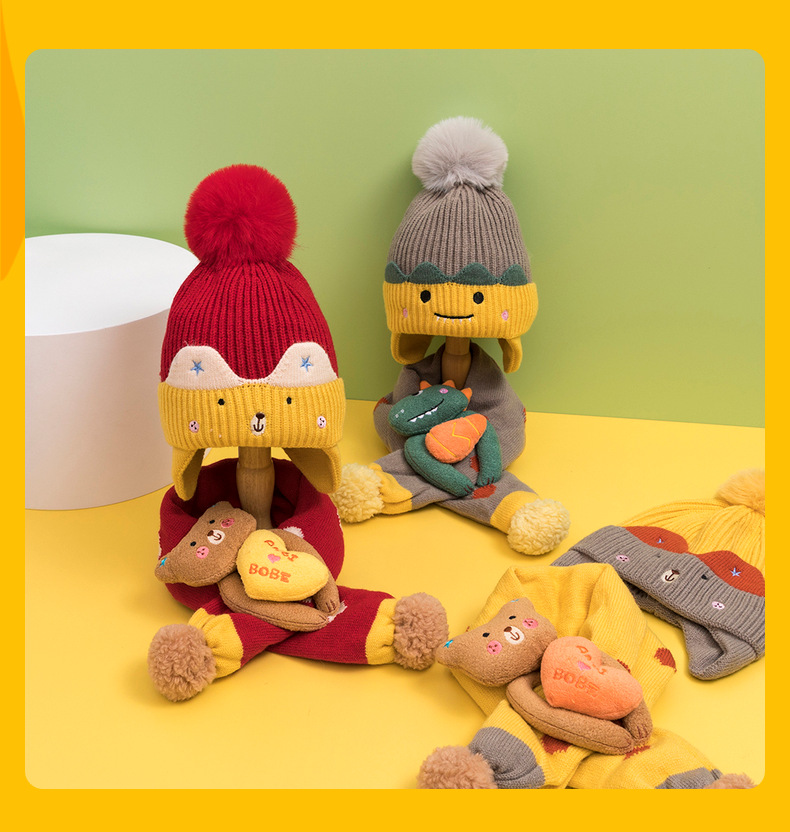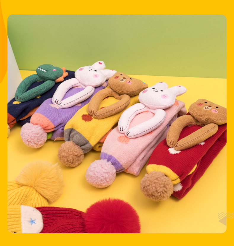 Трехмерная Детская шапка-шарф с героями мультфильмов, осенне-зимняя детская теплая шерстяная шапка, шарф, костюм От 1 до 3 лет
