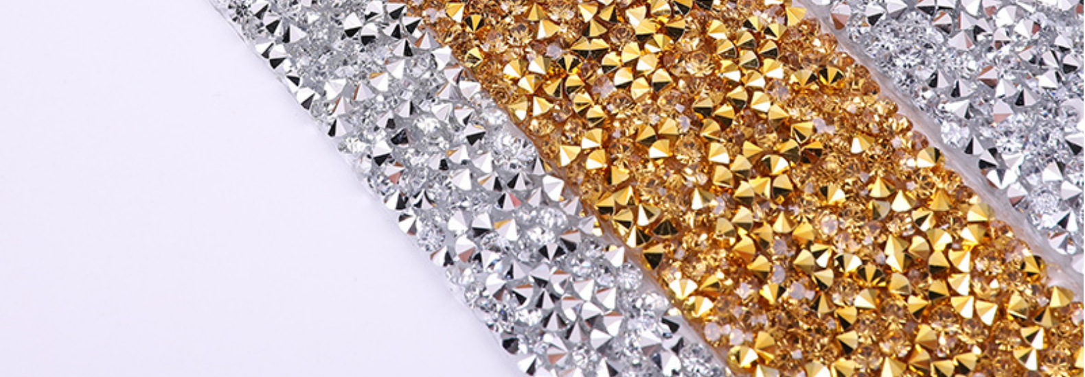 Оптовые поставки от производителя: полоски из страз для отделки подола свадебных платьев, термоклеевые стразы, самоклеящиеся стразы для рукоделия, стразы-наклейки.
