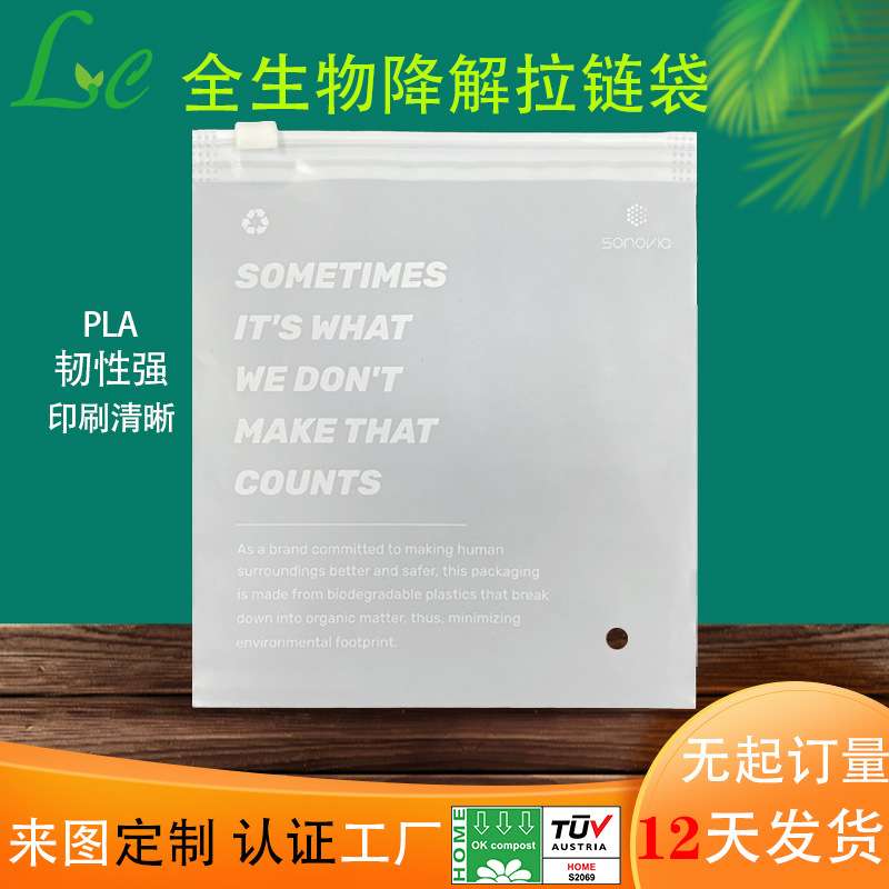 PBAT环保服装包装袋 PLA堆肥印刷磨砂拉链袋 全生物可降解拉链袋 全降解拉链袋 可降解服装袋 环保 帽子 打底裤 羽绒服 出口