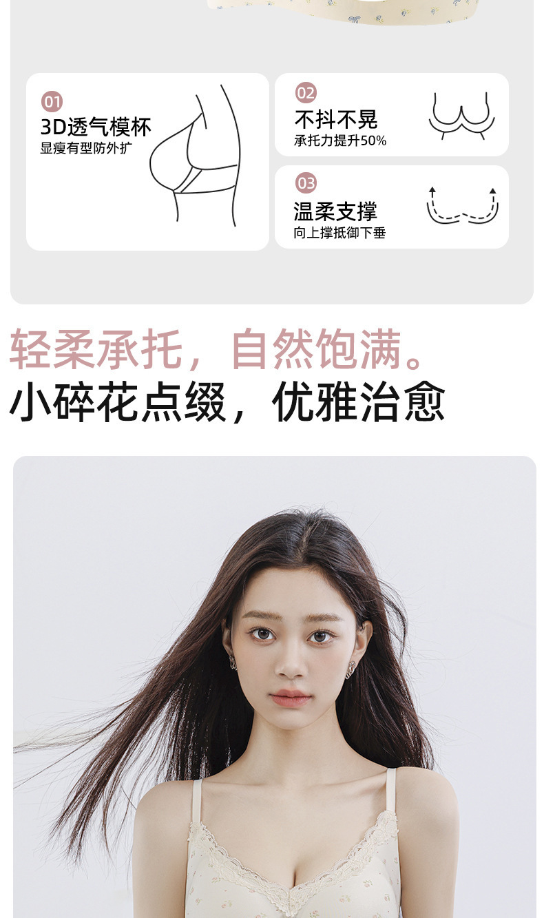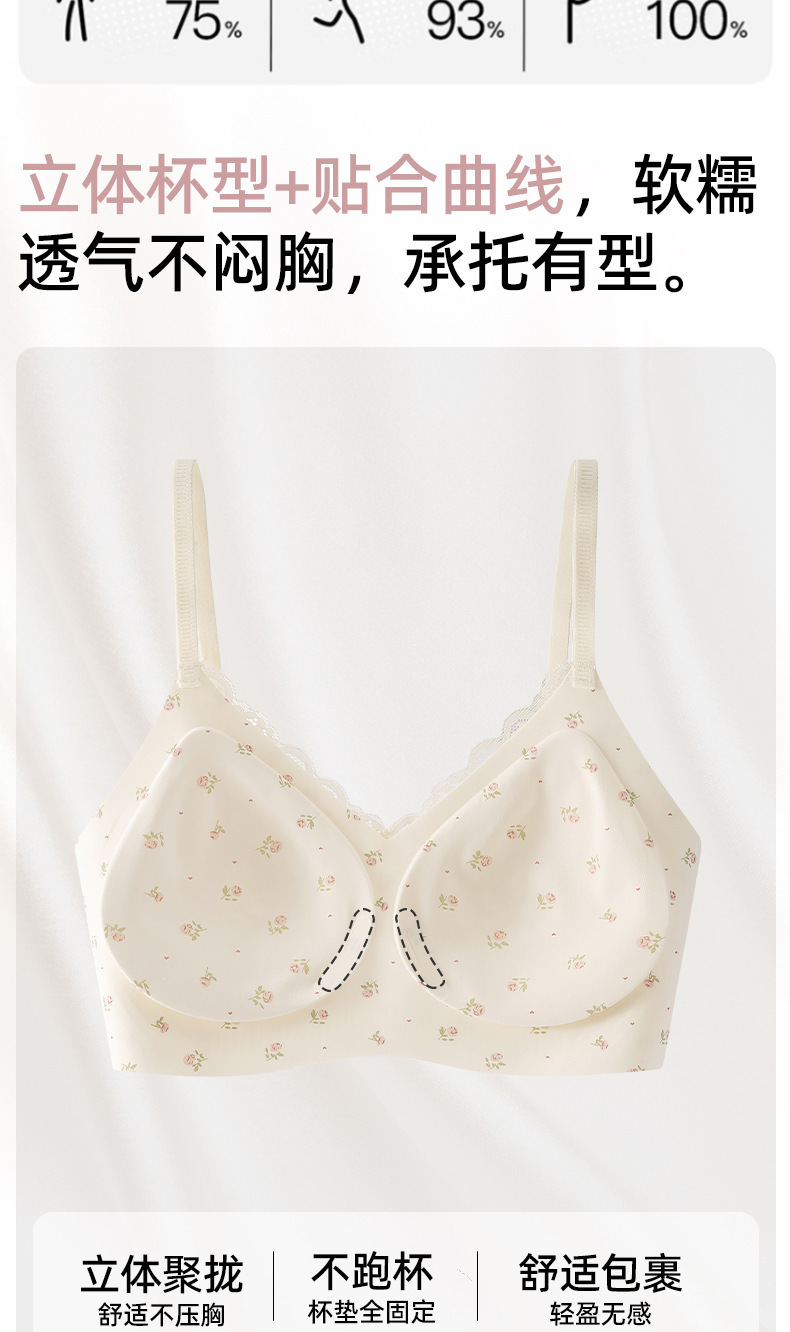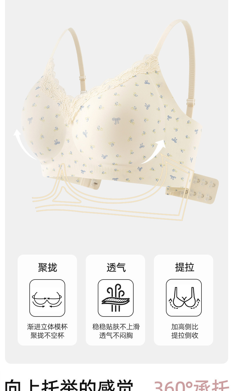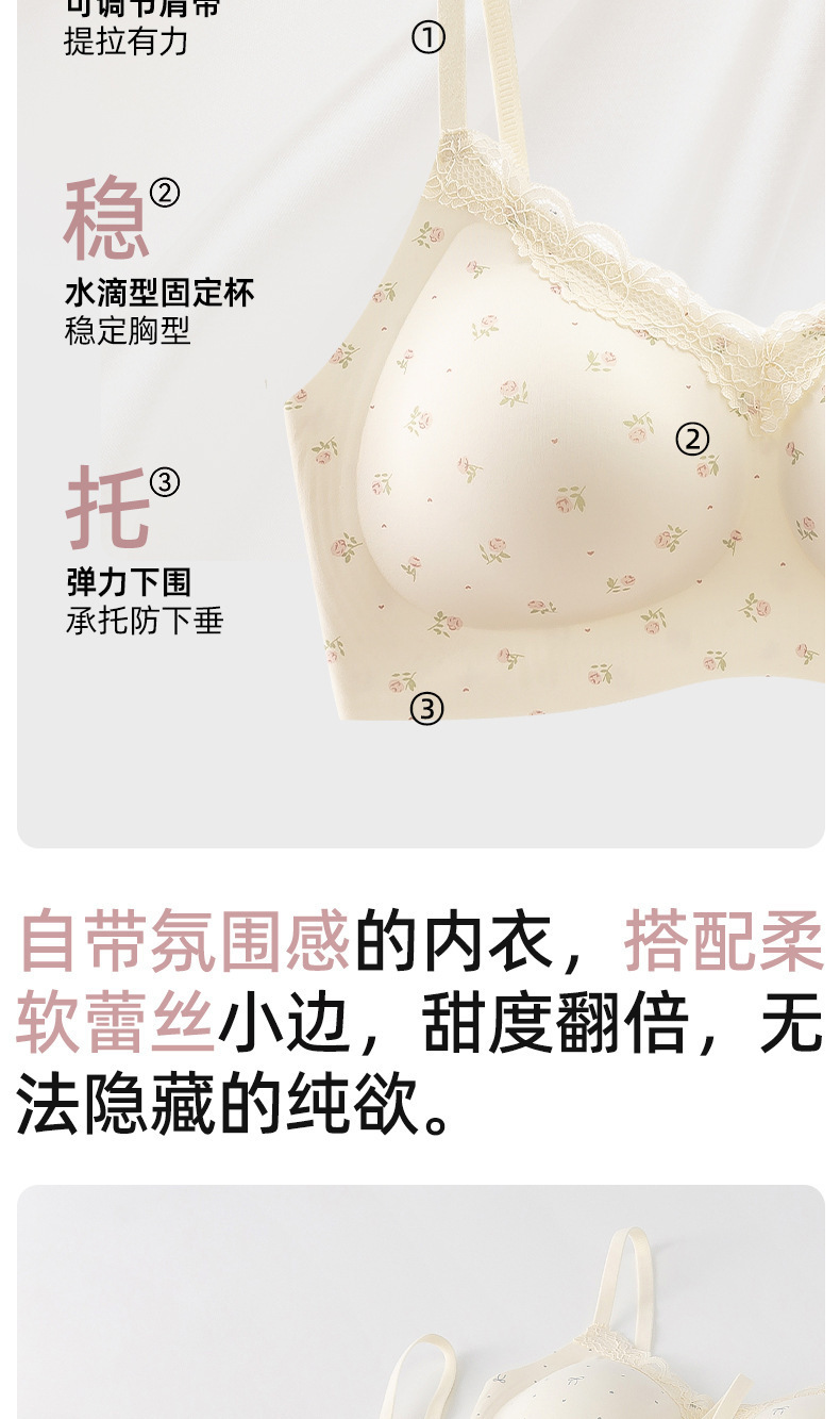 Кружевное нижнее белье с цветочным узором для женщин с маленькой грудью, без косточек, с мягкой поддержкой, предотвращающее провисание, нежное, с эффектом пуш-ап, сексуальное, тонкое, с красивой спинкой.