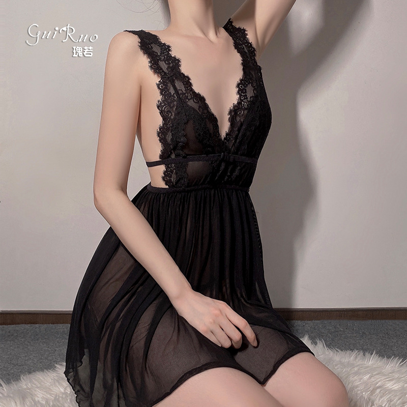 Элегантное нижнее белье DZ, сексуальные пижамы больших размеров с разрезом, соблазнительное прозрачное белье для сна, горячий и страстный женский комплект 725.