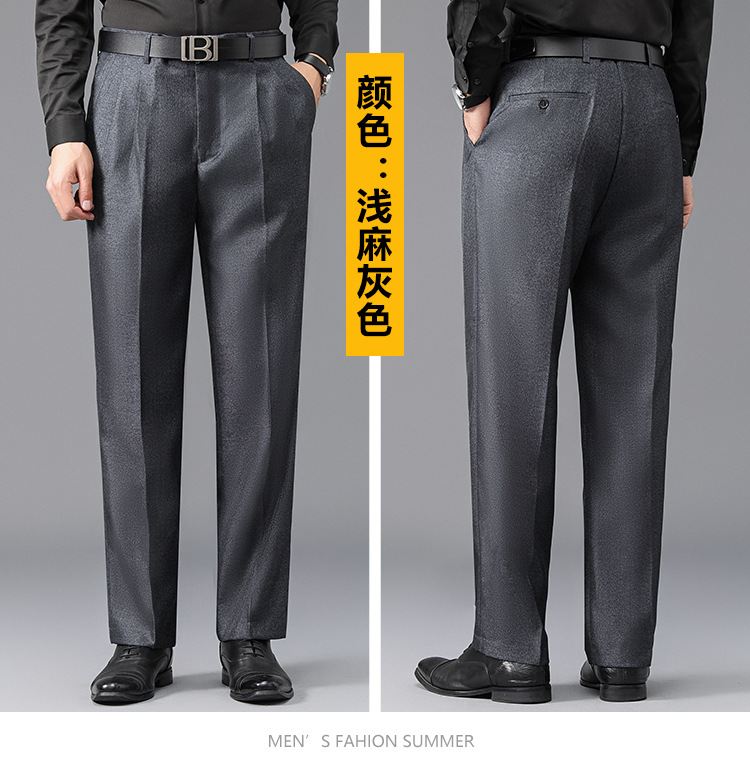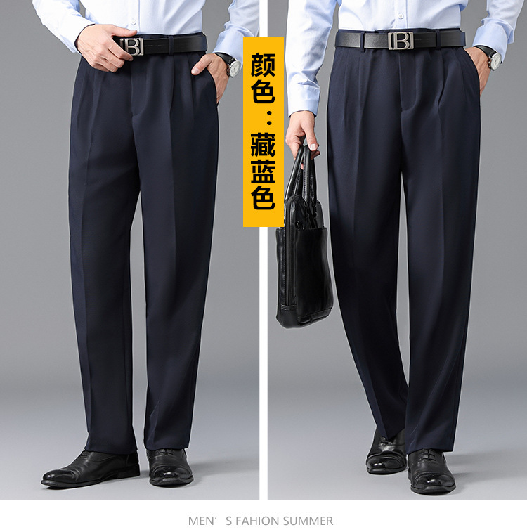 Брюки с двойными складками, мужские свободные прямые брюки с высокой талией и средним возрастом, брюки, весенне-осенние, толстые брюки без папы