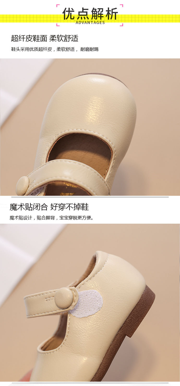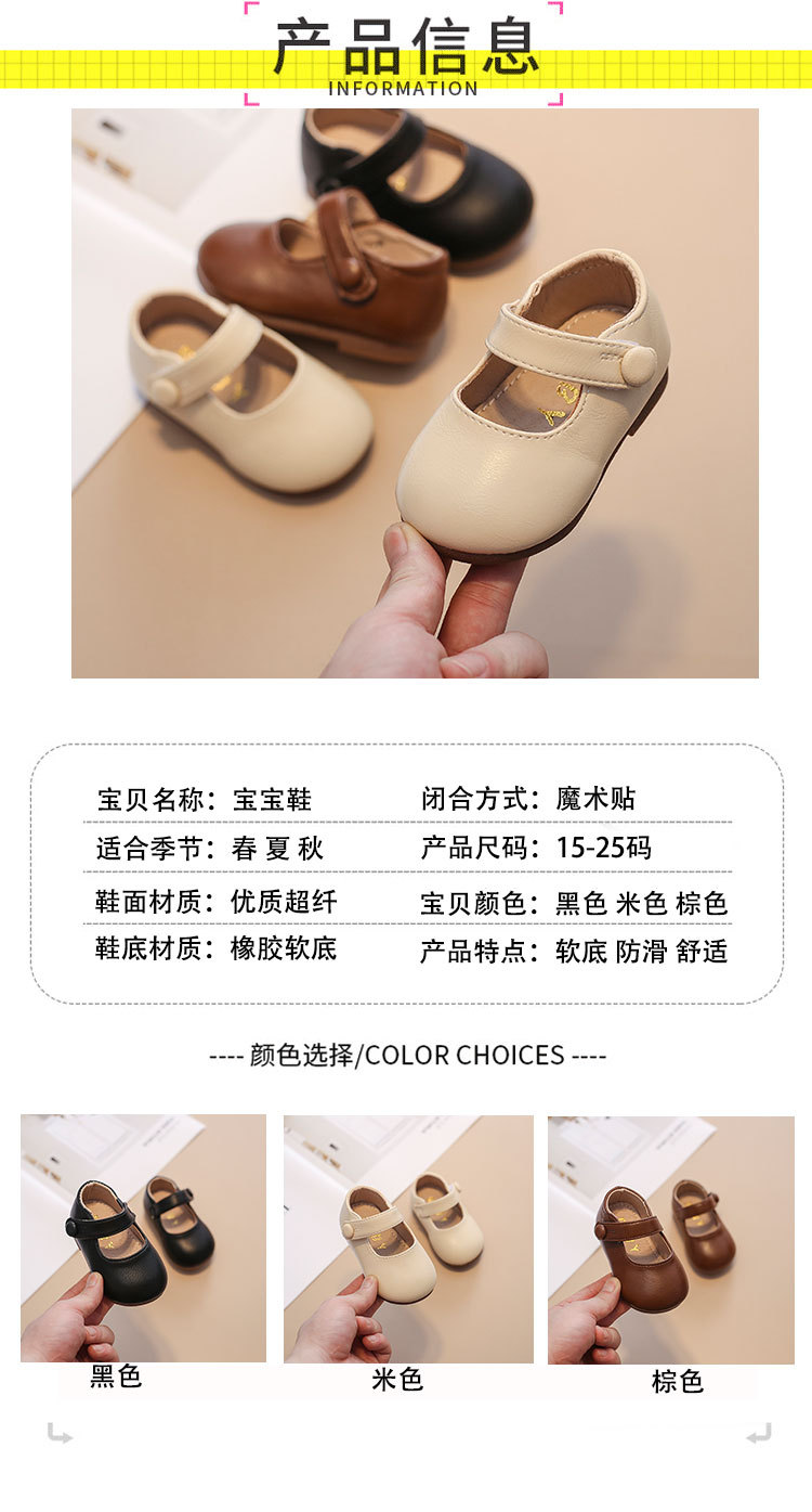 Детская обувь принцессы Детская обувь на мягкой подошве Весна и осень Новая Повседневная модная обувь на липучке для девочек Кожаная обувь для младенцев