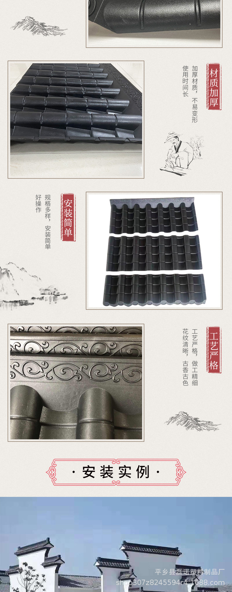 Плитка на крыше, антикварная интегрированная плитка, плитка из синтетической смолы, китайский карниз, декоративная плитка, устойчивая к коррозии, устойчивая к атмосферным воздействиям пластиковая плитка