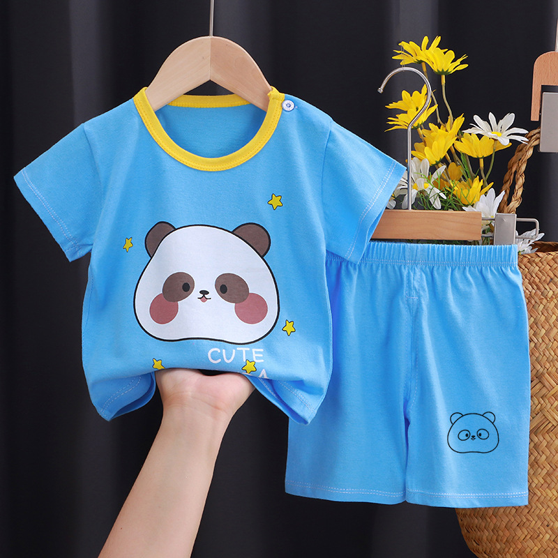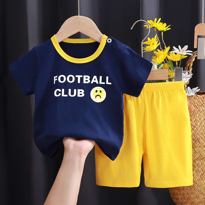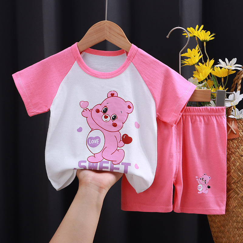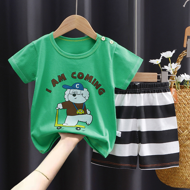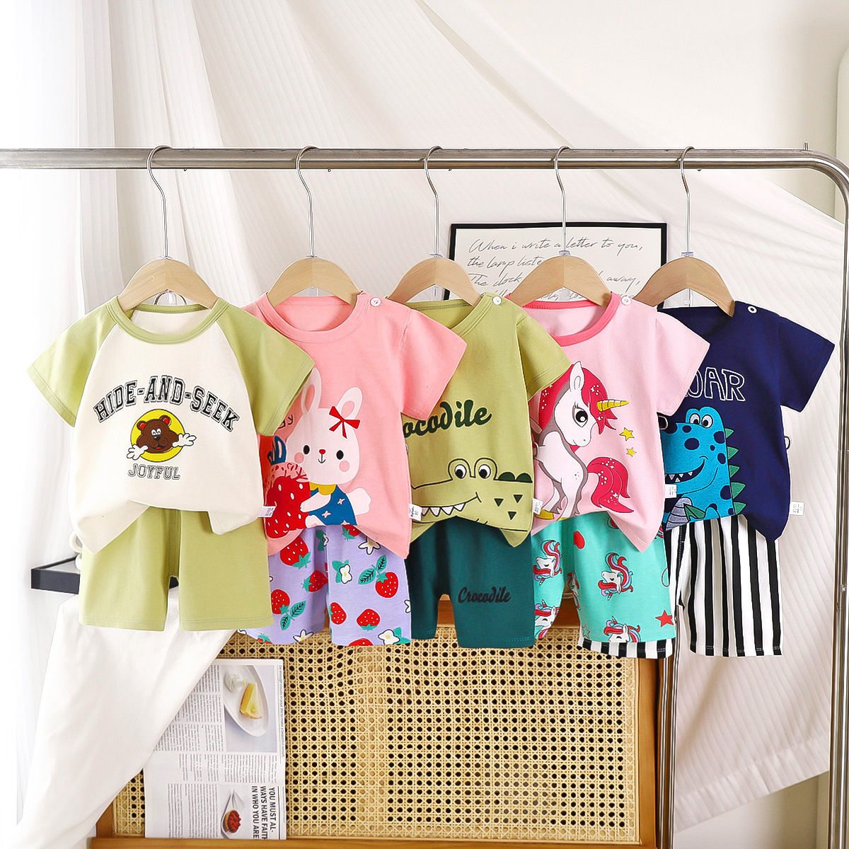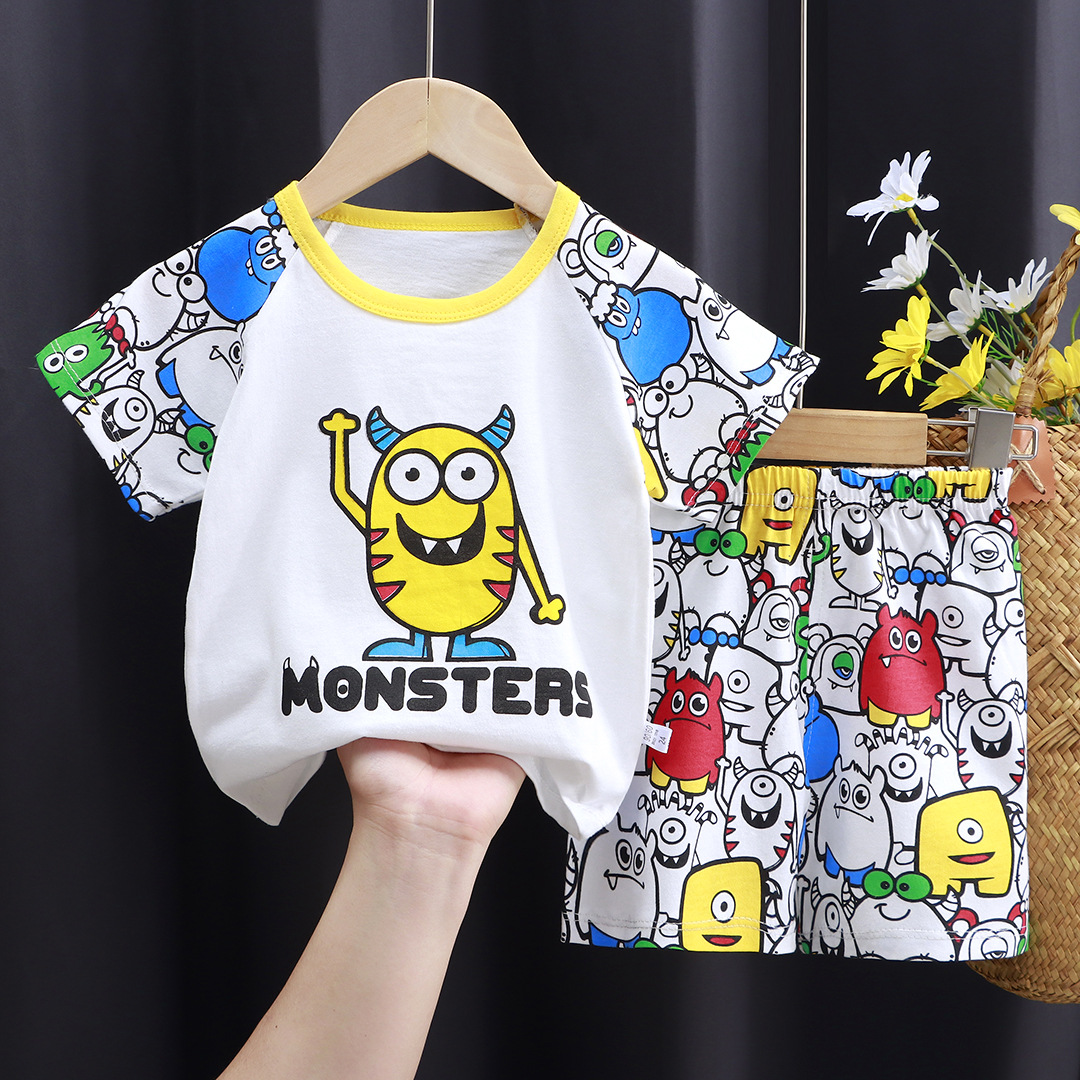 Детский костюм с короткими рукавами, летняя хлопковая одежда для мальчиков, новая Корейская футболка для девочек, костюм с шортами, детская одежда для внешней торговли