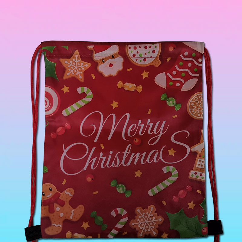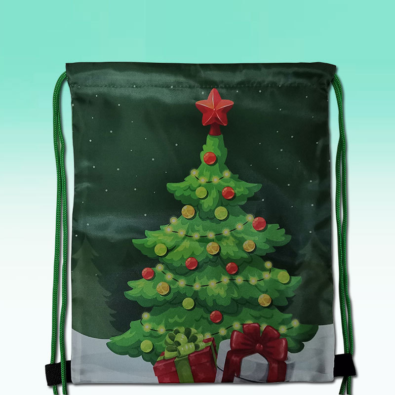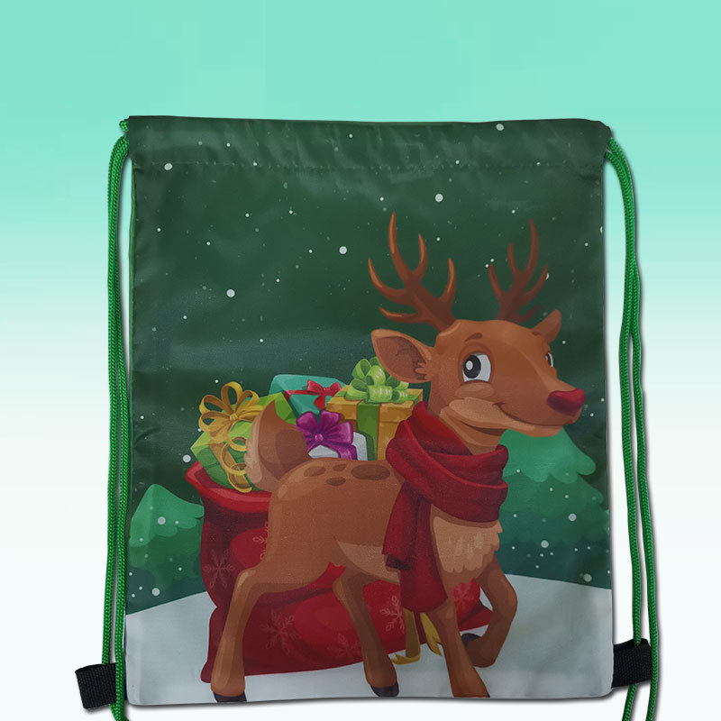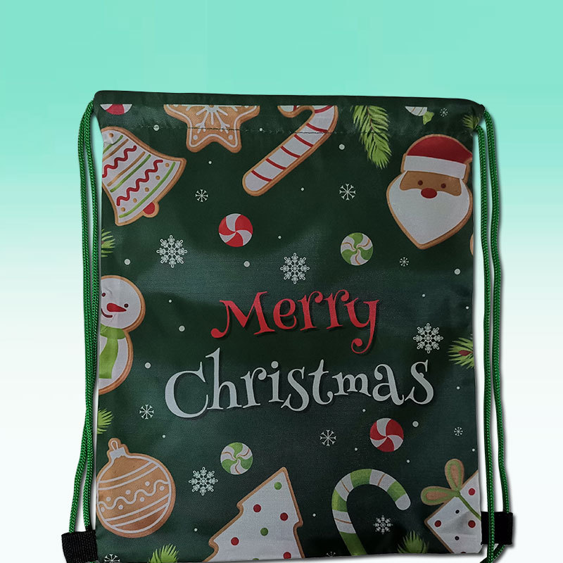 Завод питания Рождество серии детей Drawstring сумка 210D полиэстер рюкзак мультфильм хранения комплект карман