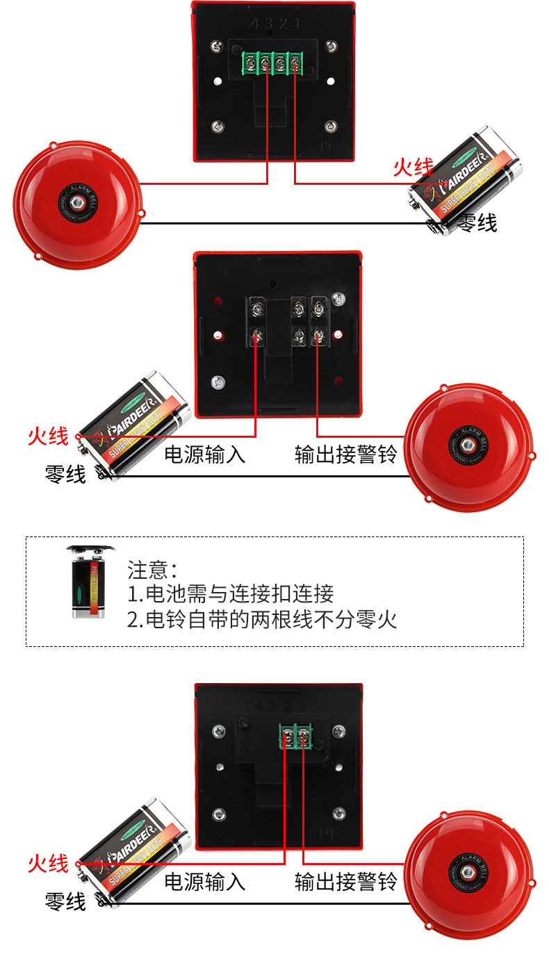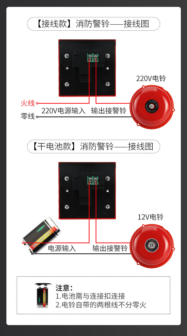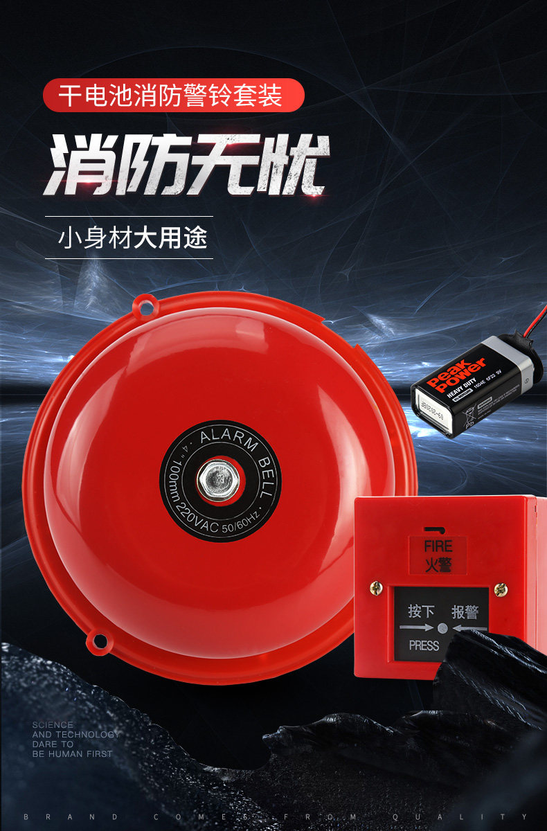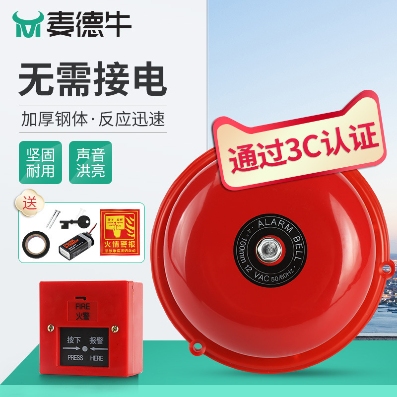 Пожарная сигнализация, звонок 4inch, сухая батарея, заводской осмотр, пожарный электрический звонок, бытовой резервный источник питания, домашняя фабрика, пожарная сигнализация