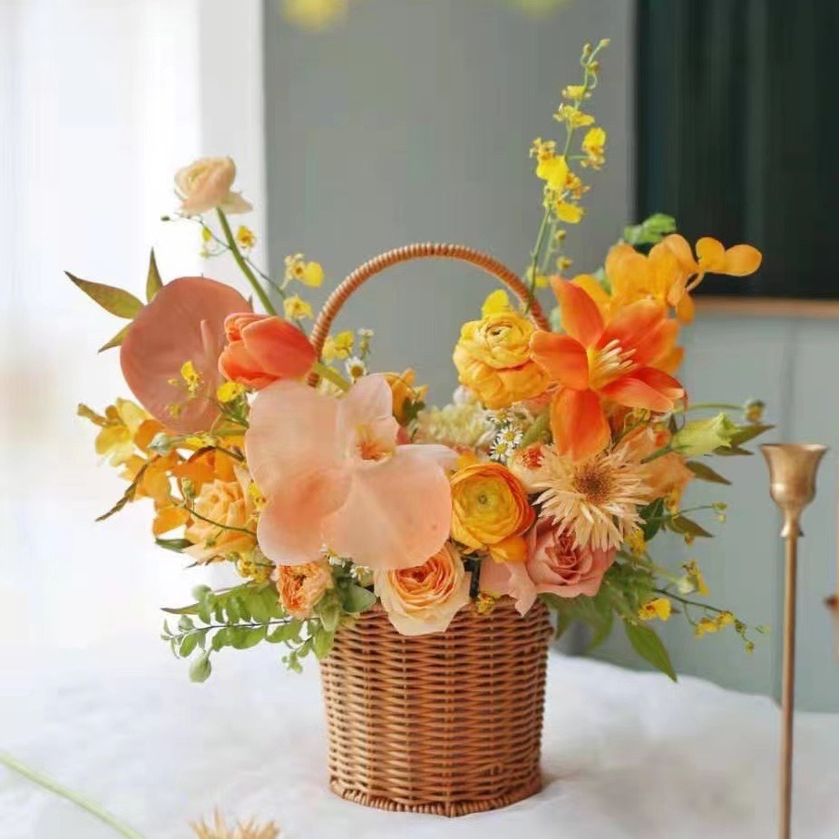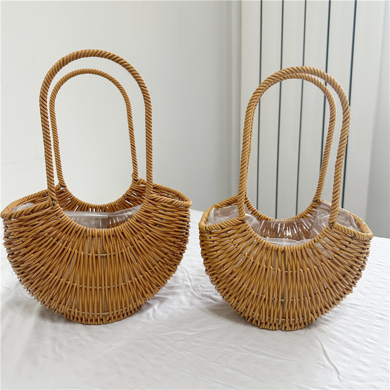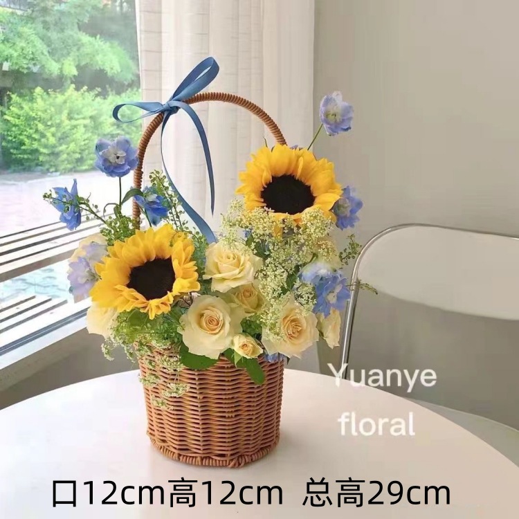 Оптовые плетеные корзины для цветов из искусственного ротанга, плетеные корзины в деревенском стиле из кованого железа, корзины для цветов, плетеные корзины, ручные корзины для свежих цветов и садоводства.