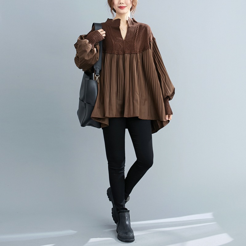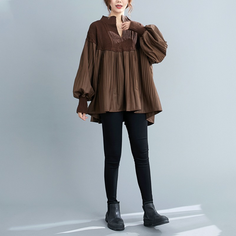 Женская свободная приталенная рубашка большого размера в Корейском стиле в стиле ретро с V-образным вырезом и пышными рукавами