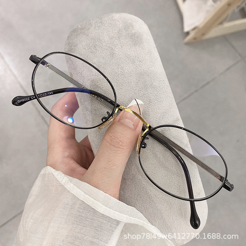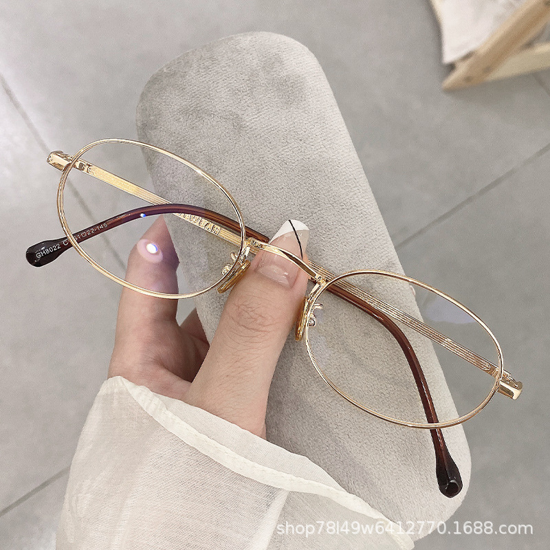 Очки GH8022 овальной формы, маленькая оправа, простой металлический ультралегкий золотой цвет, антибликовые, цельные, оптом, в ретро-стиле.