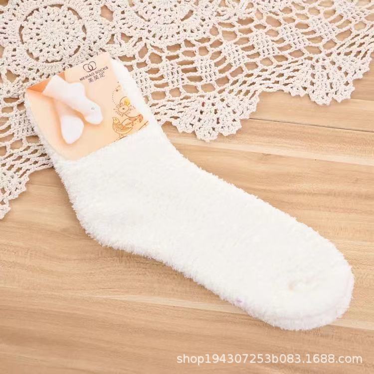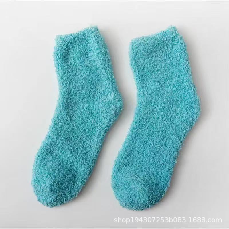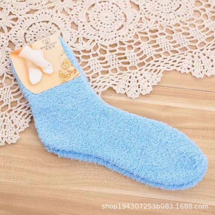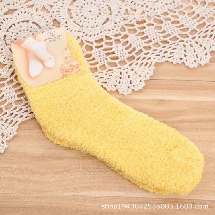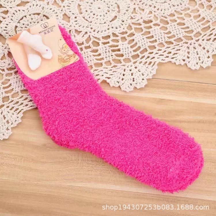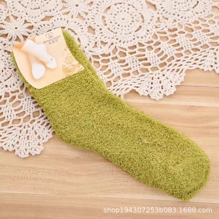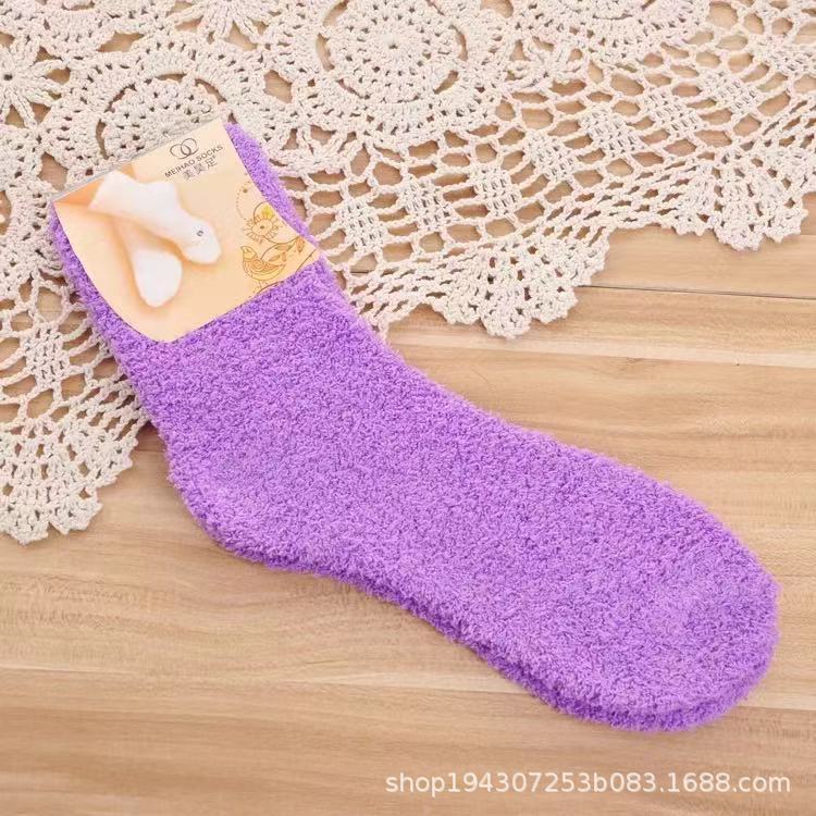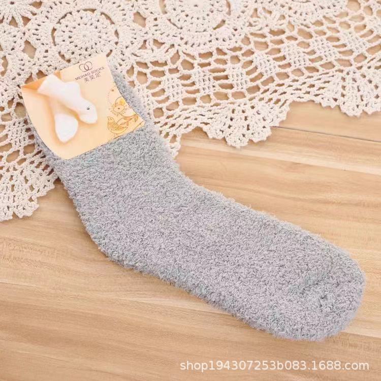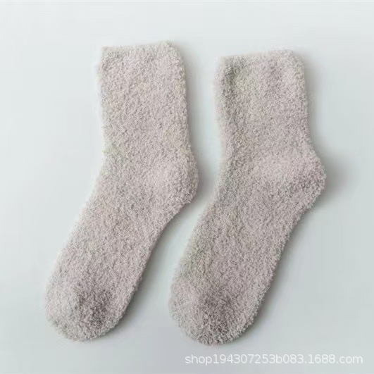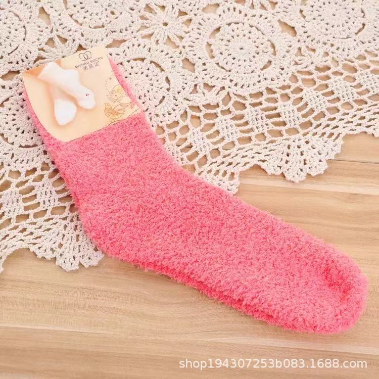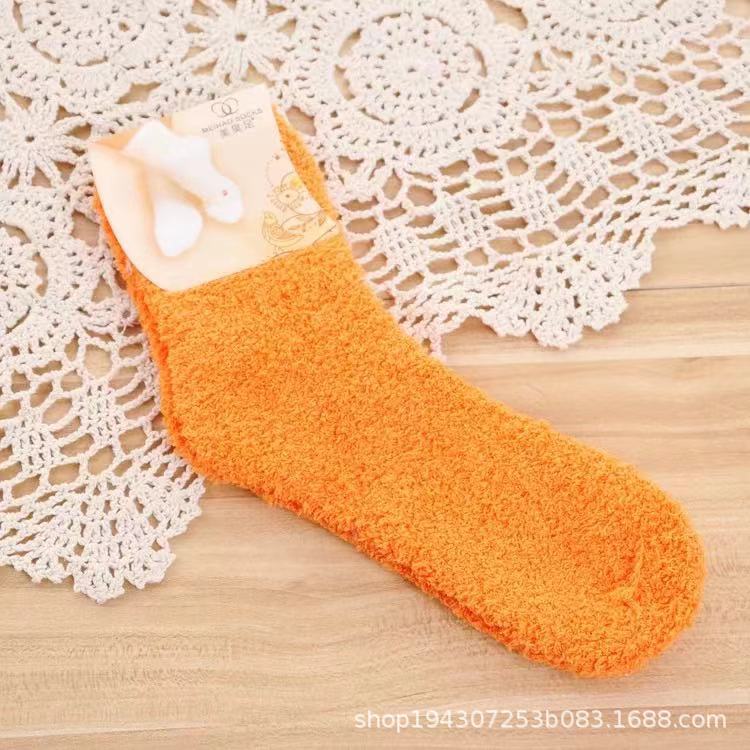 Универсальные однотонные носки из кораллового флиса для женщин на осень и зиму, утолщенные носки для сна, полуплотные флисовые носки, носки средней длины до середины икры, оптовая продажа для трансграничной торговли