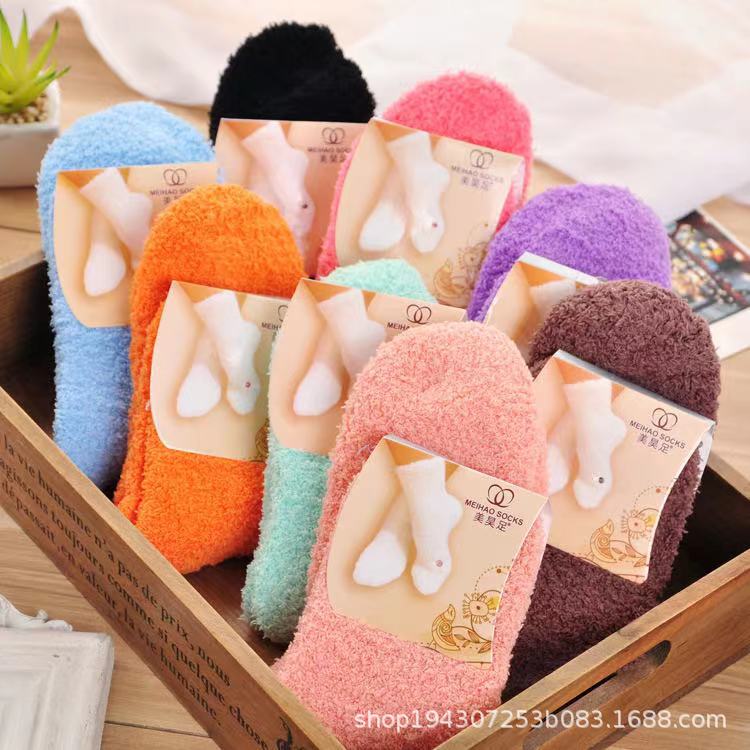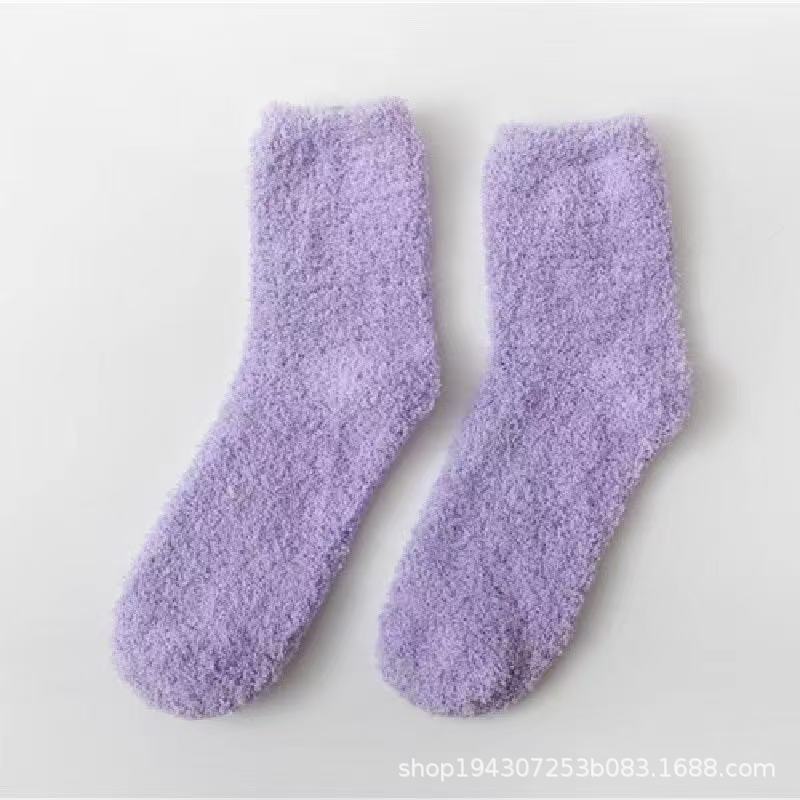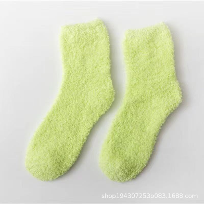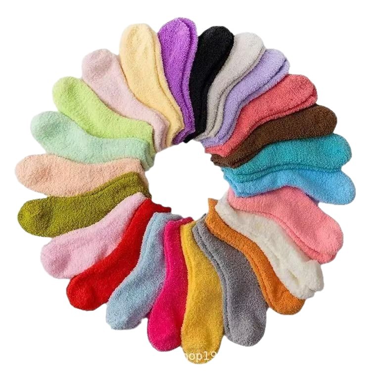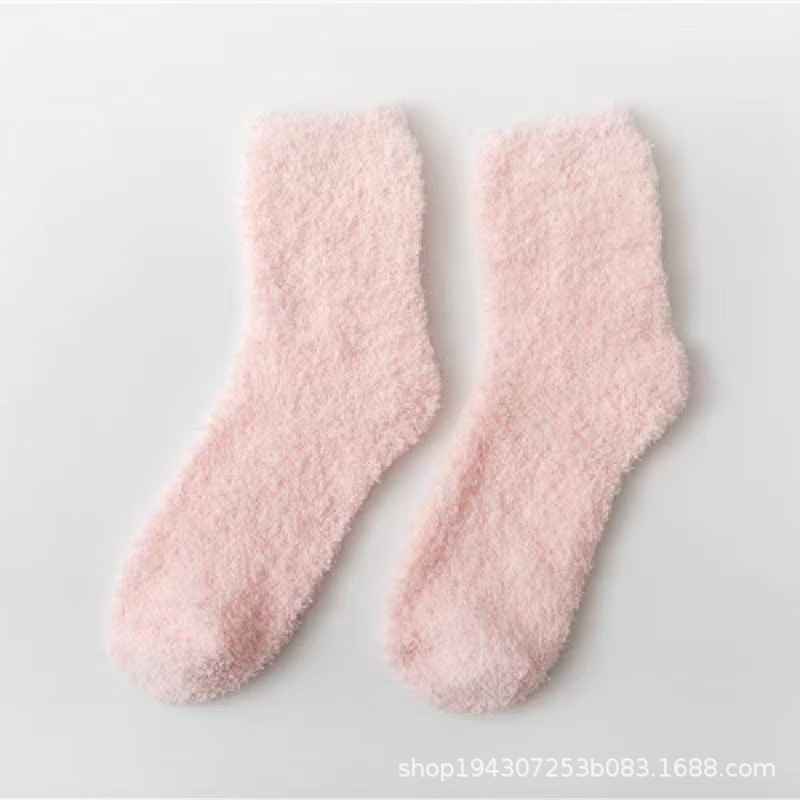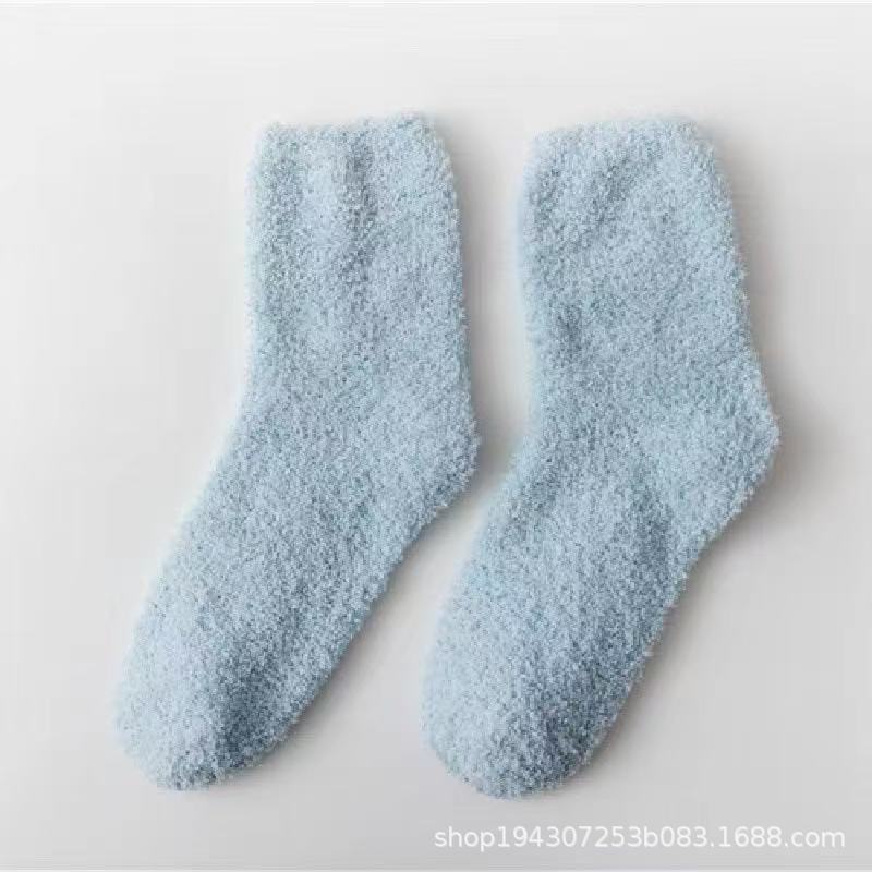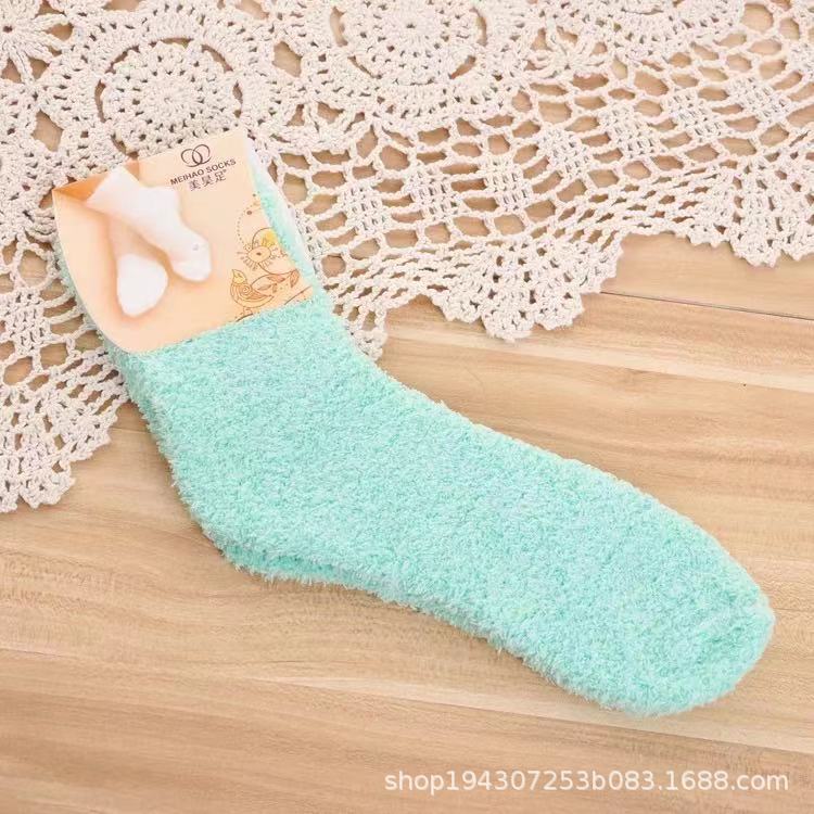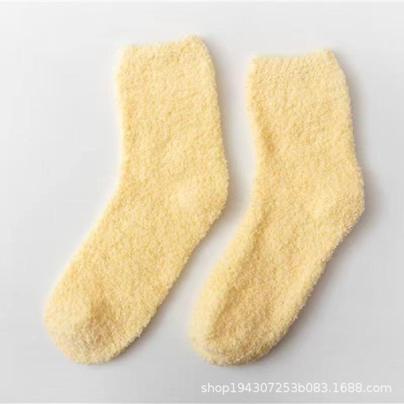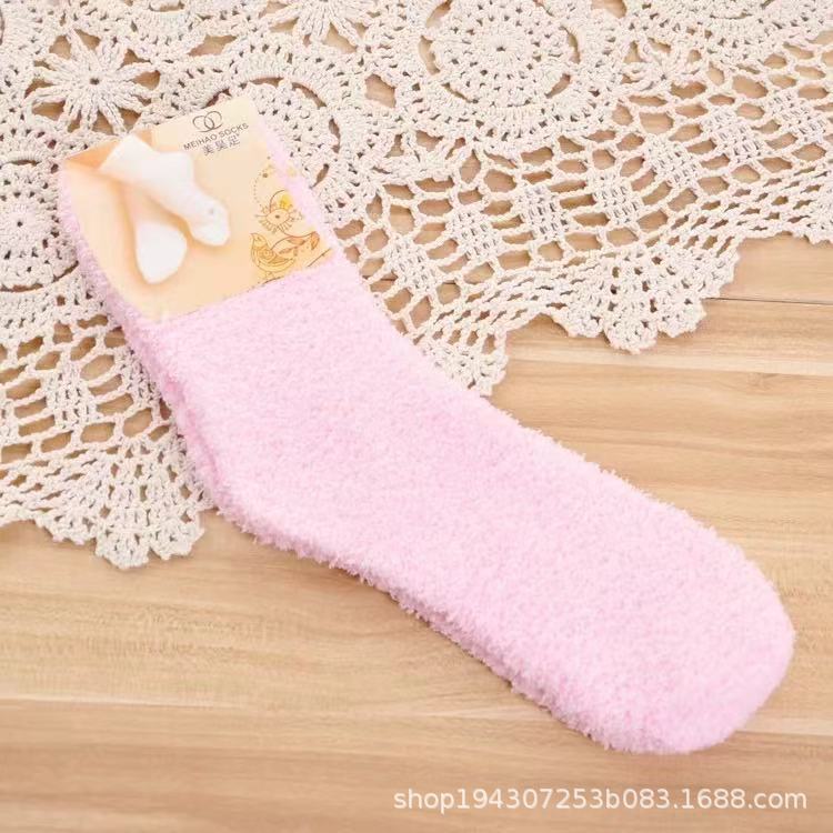Универсальные однотонные носки из кораллового флиса для женщин на осень и зиму, утолщенные носки для сна, полуплотные флисовые носки, носки средней длины до середины икры, оптовая продажа для трансграничной торговли