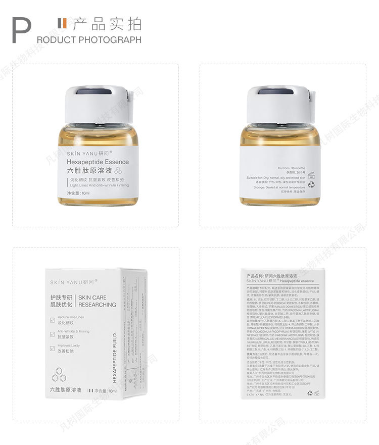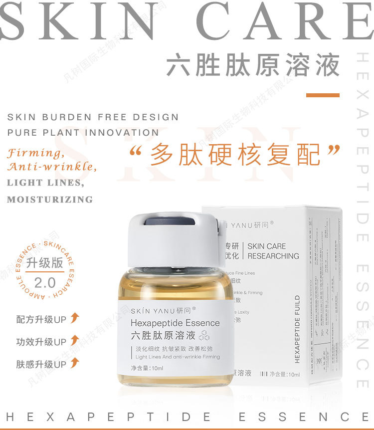 Шестипептидная эссенция для подтягивания кожи, против морщин, уменьшения мелких и глазных морщин, увлажняющая и питательная ампула для салонов красоты с полипептидным эффектом "водяного сияния".