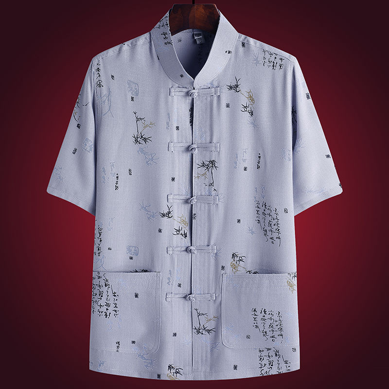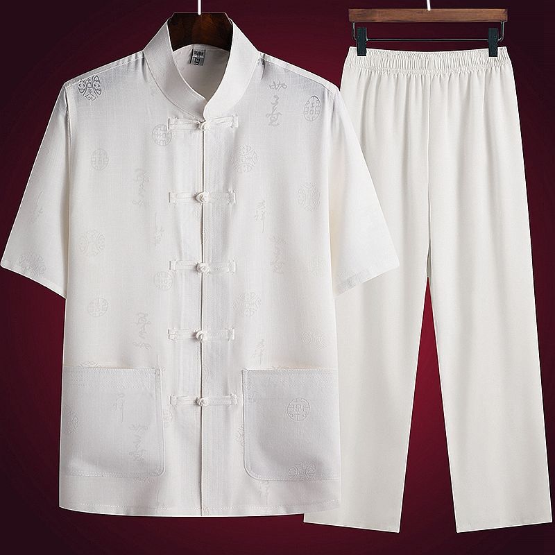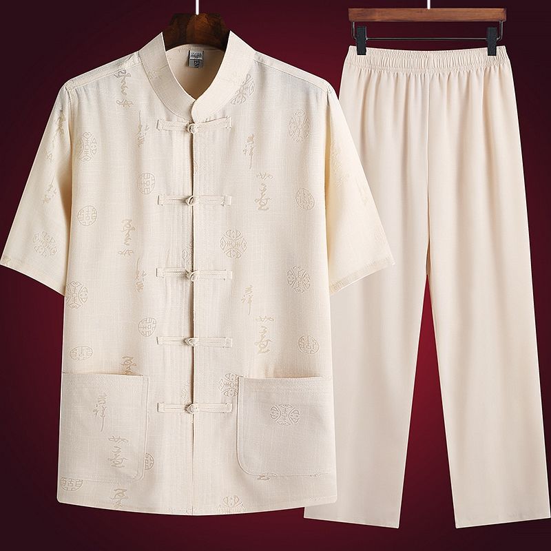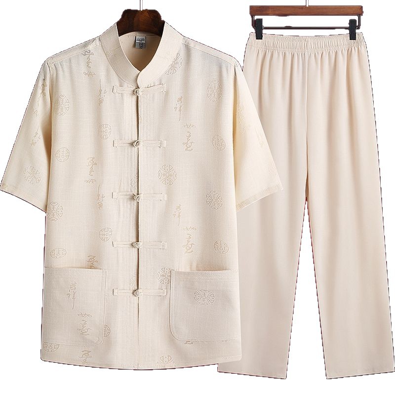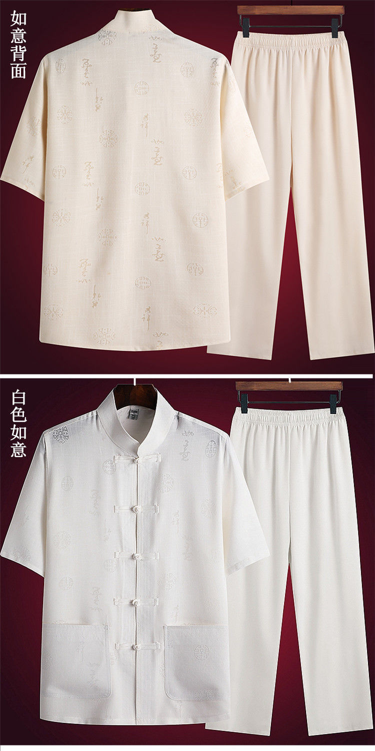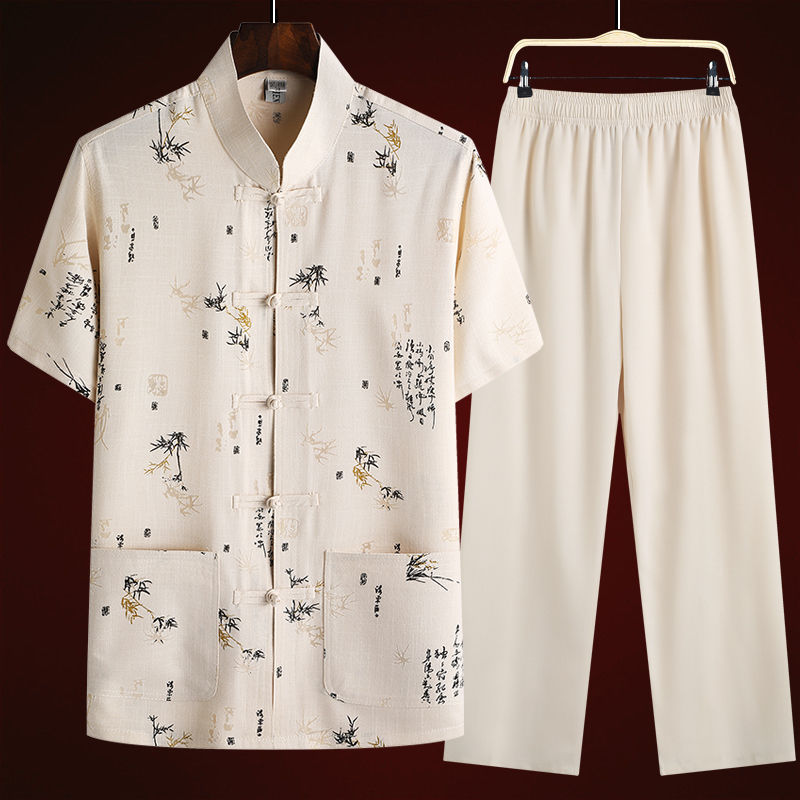 Костюм Тан, мужской повседневный костюм с короткими рукавами, летняя одежда для папы, для людей среднего и пожилого возраста, мужская летняя одежда для Дедушки в китайском стиле ханьфу